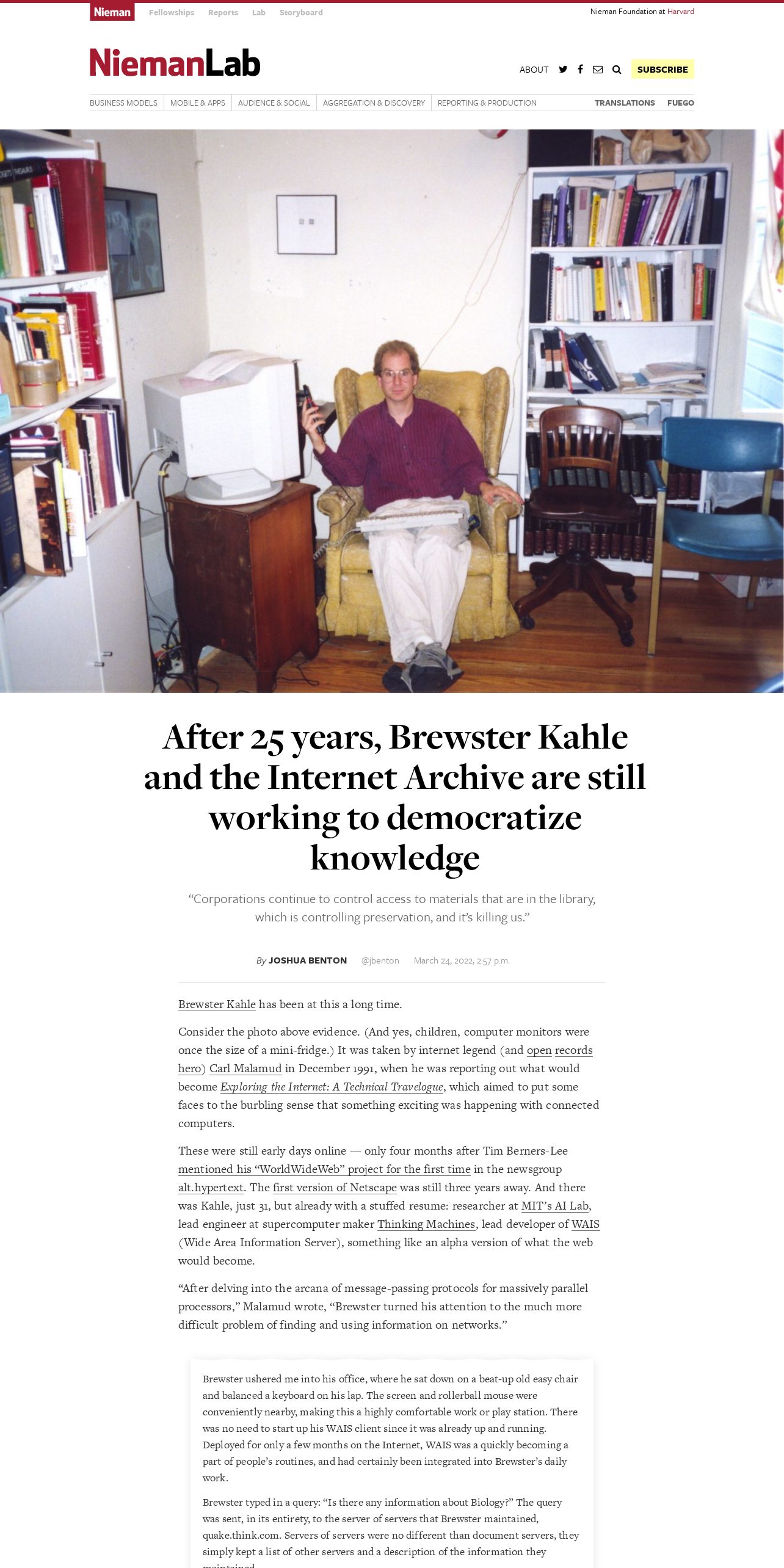 https://www.niemanlab.org:443/2022/03/after-25-years-brewster-kahle-and-the-internet-archive-are-still-working-to-democratize-knowledge/