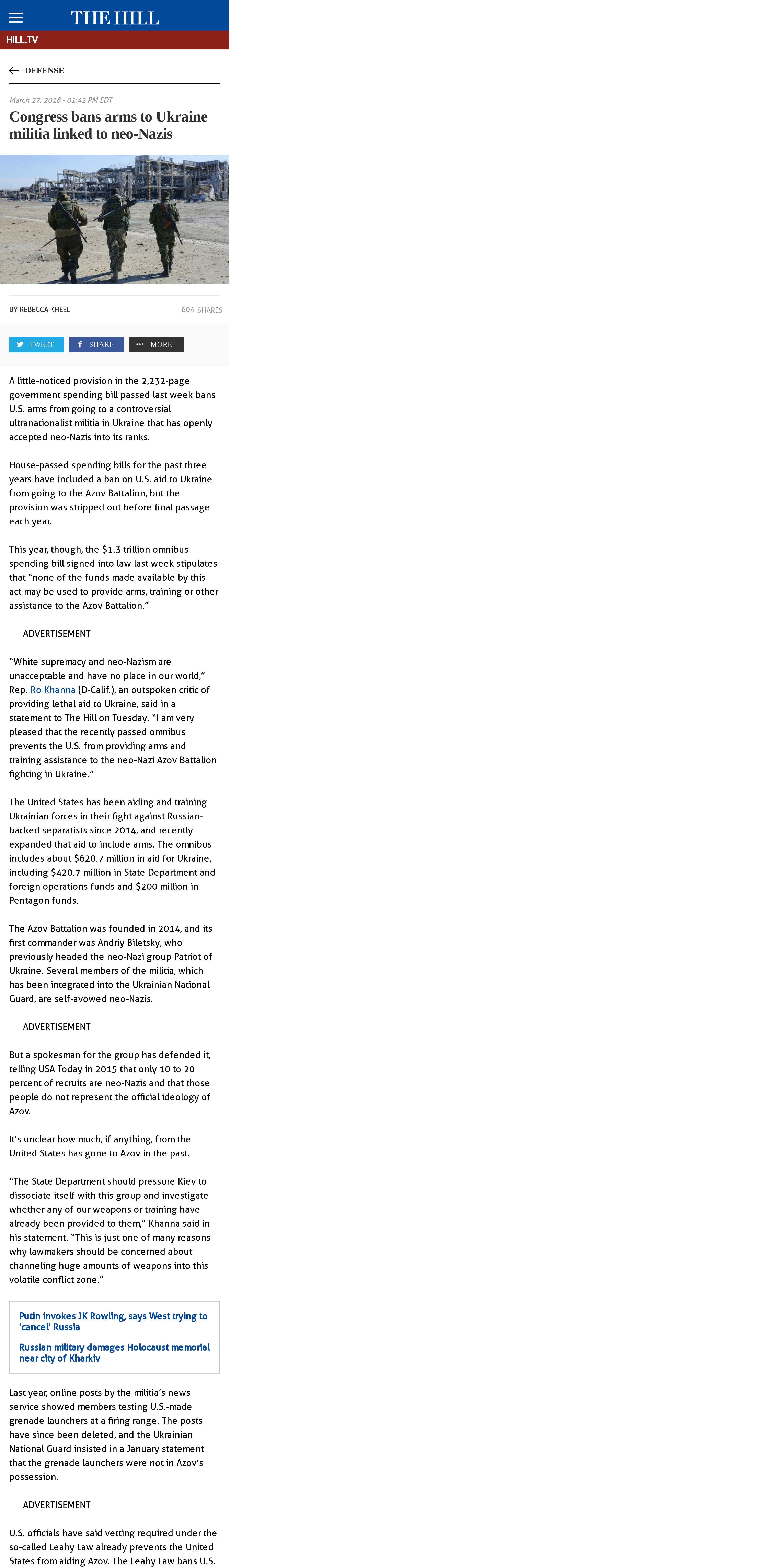 https://thehill.com:443/policy/defense/380483-congress-bans-arms-to-controversial-ukrainian-militia-linked-to-neo-nazis