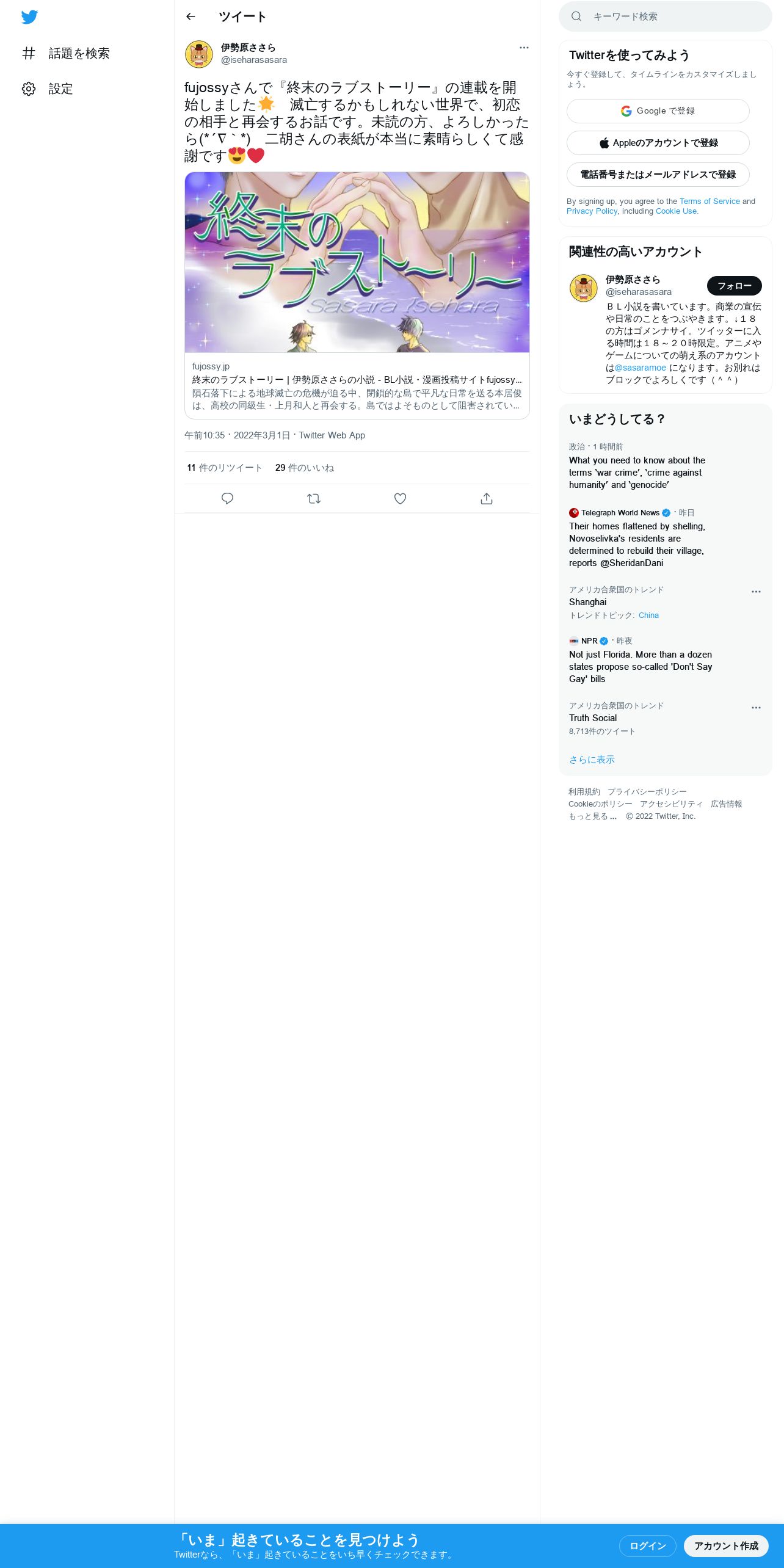 https://mobile.twitter.com:443/iseharasasara/status/1498607836917485568