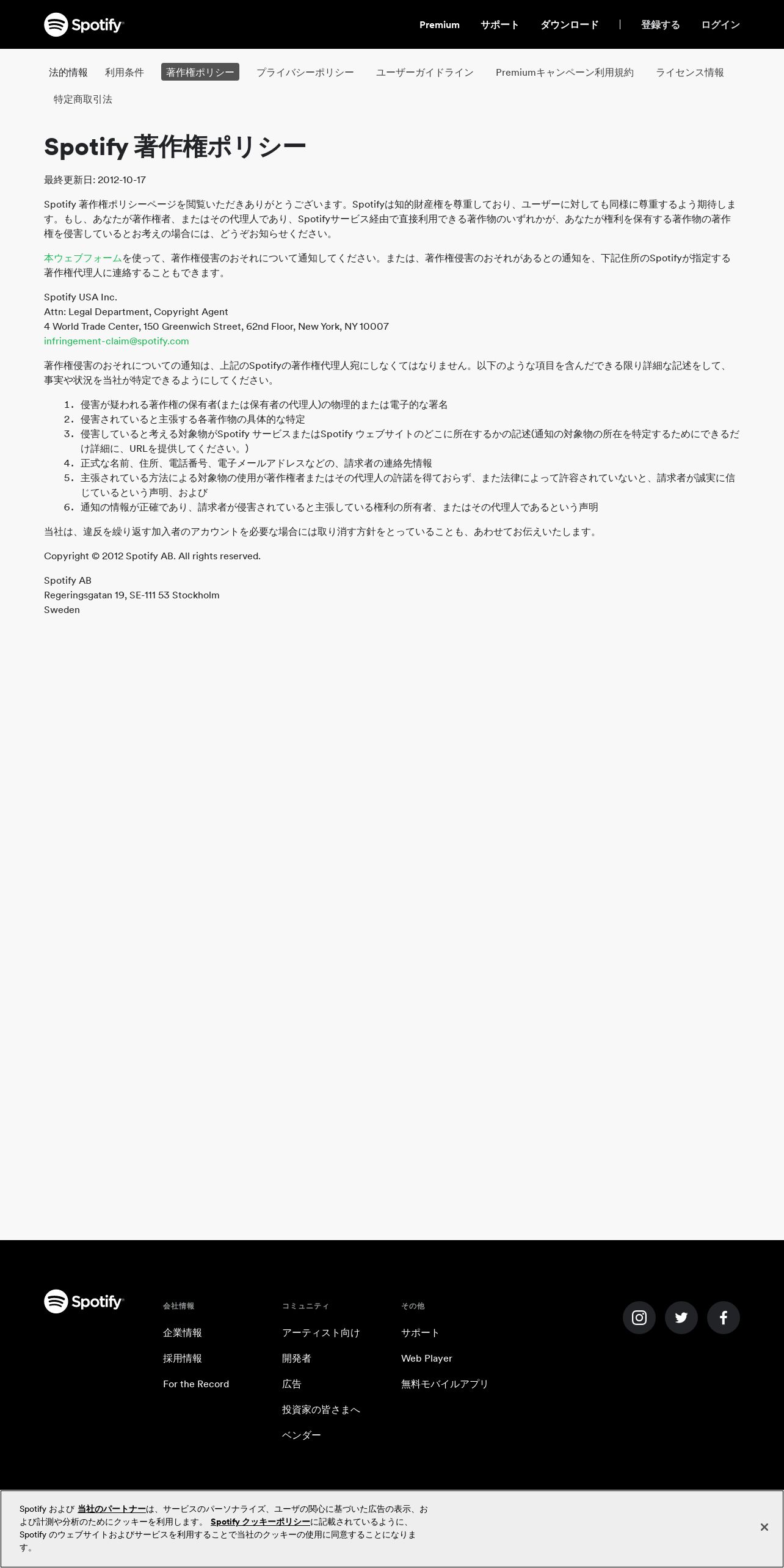 https://www.spotify.com:443/jp/legal/copyright-policy/