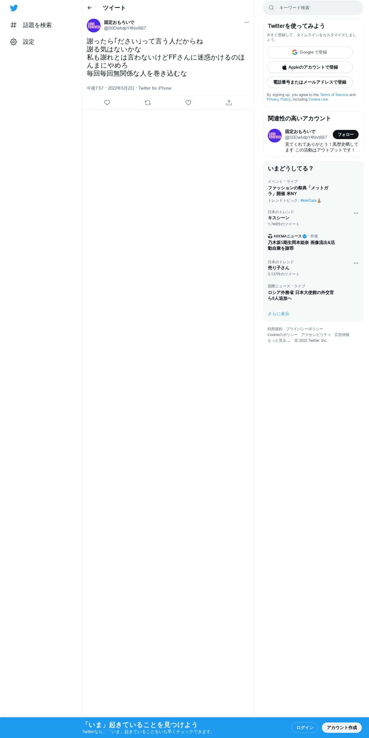 取得元URL: https://twitter.com:443/S0DwhdpY4Nvt8B7/status/1521217398216740864