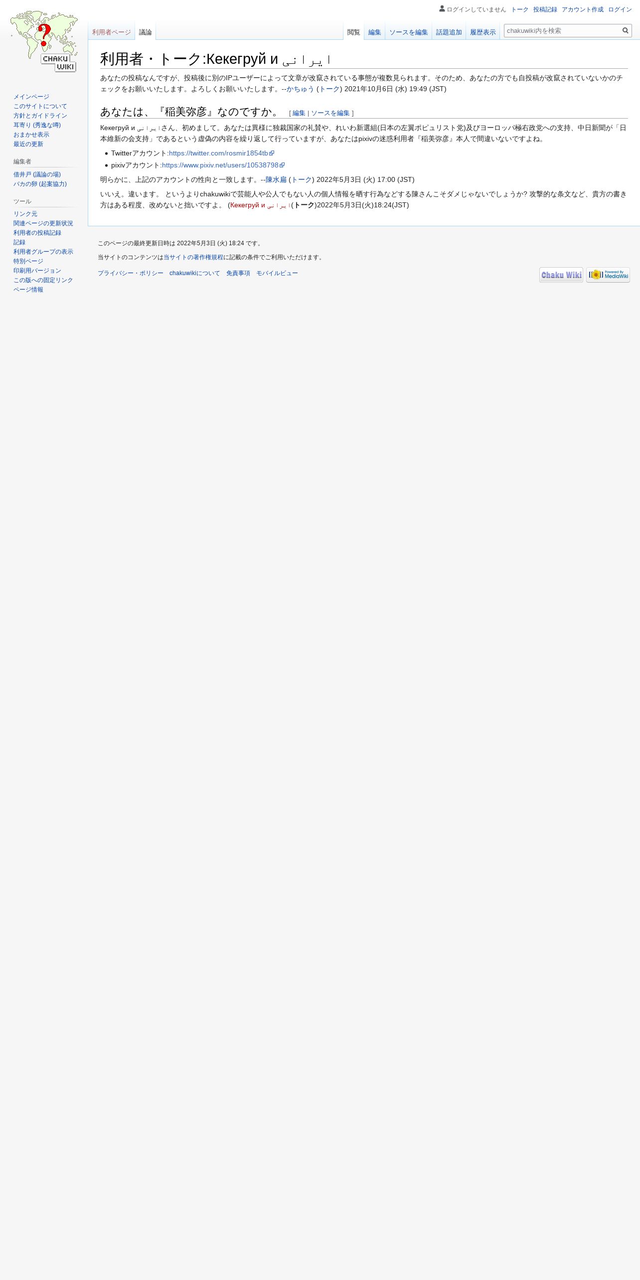 https://chakuwiki.org:443/wiki/%E5%88%A9%E7%94%A8%E8%80%85%E3%83%BB%E3%83%88%E3%83%BC%E3%82%AF:%D0%9A%D0%B5%D0%BA%D0%B5%D0%B3%D1%80%D1%83%D0%B9_%D0%B8_%D8%A7%DB%8C%D8%B1%D8%A7%D9%86%DB%8C