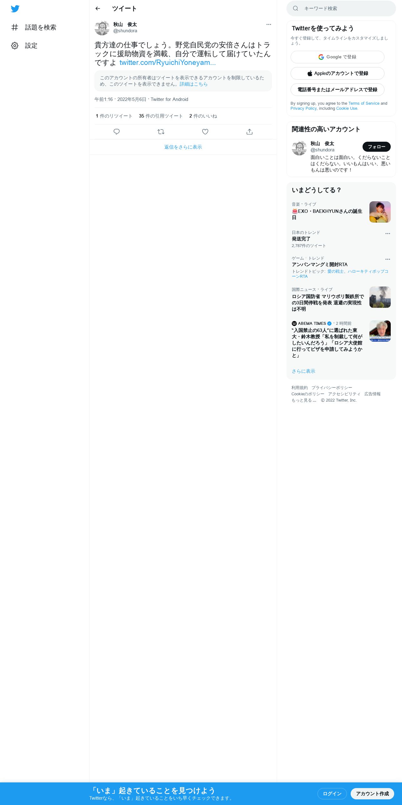 取得元URL: https://twitter.com:443/shundora/status/1522384673472921600