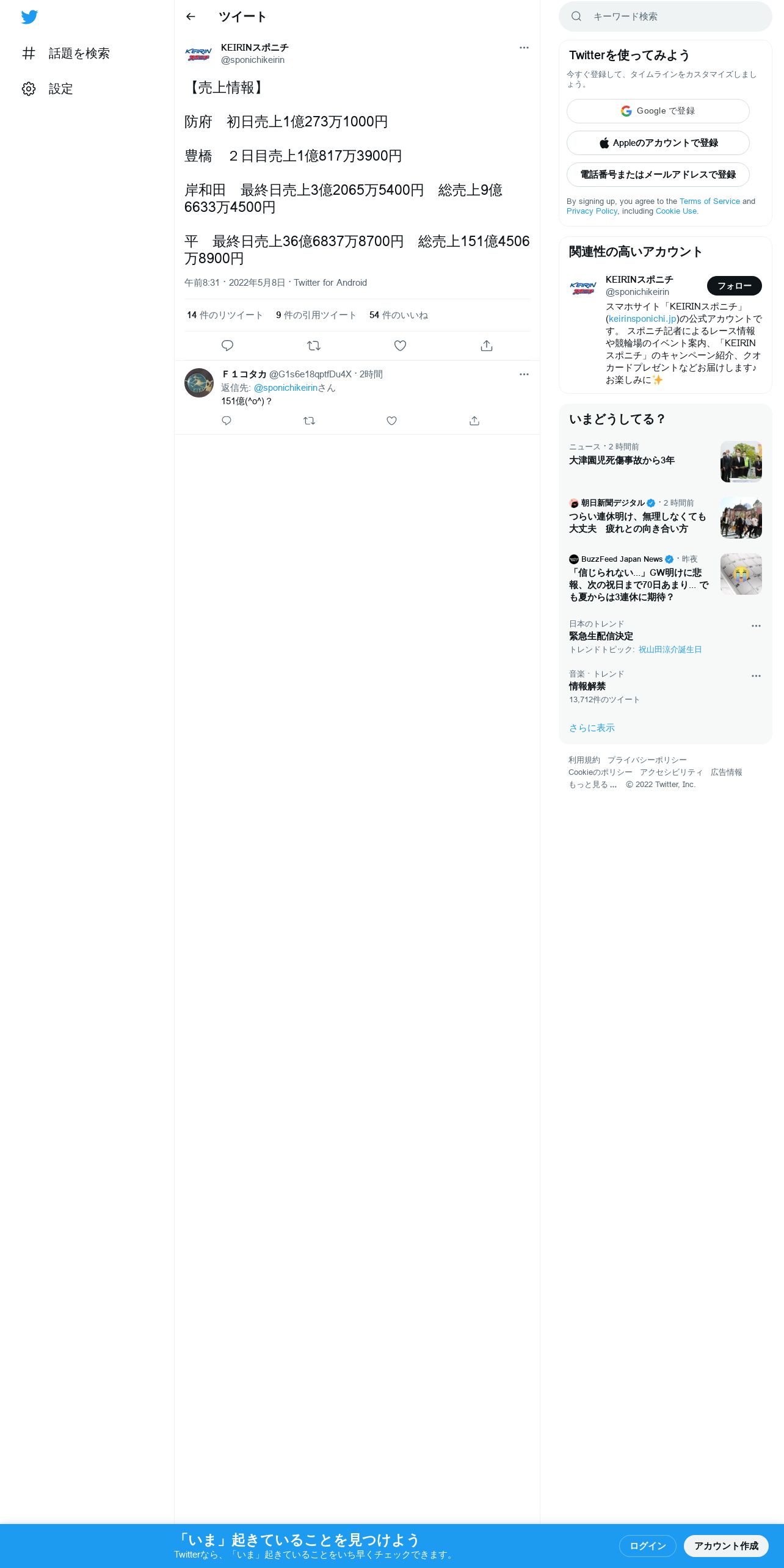 取得元URL: https://twitter.com:443/sponichikeirin/status/1523218924384698373