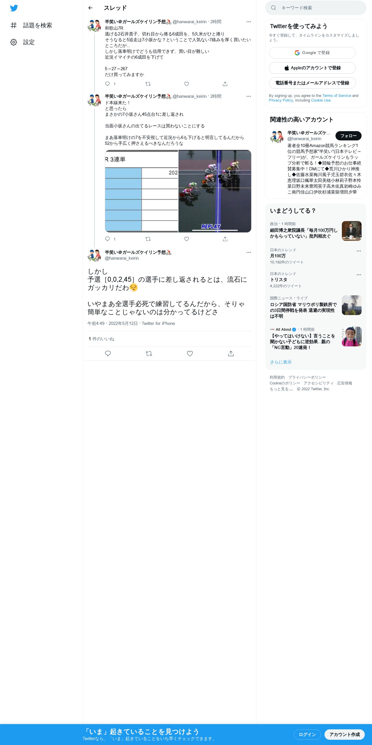 https://twitter.com:443/hanwarai_keirin/status/1524612706627887105