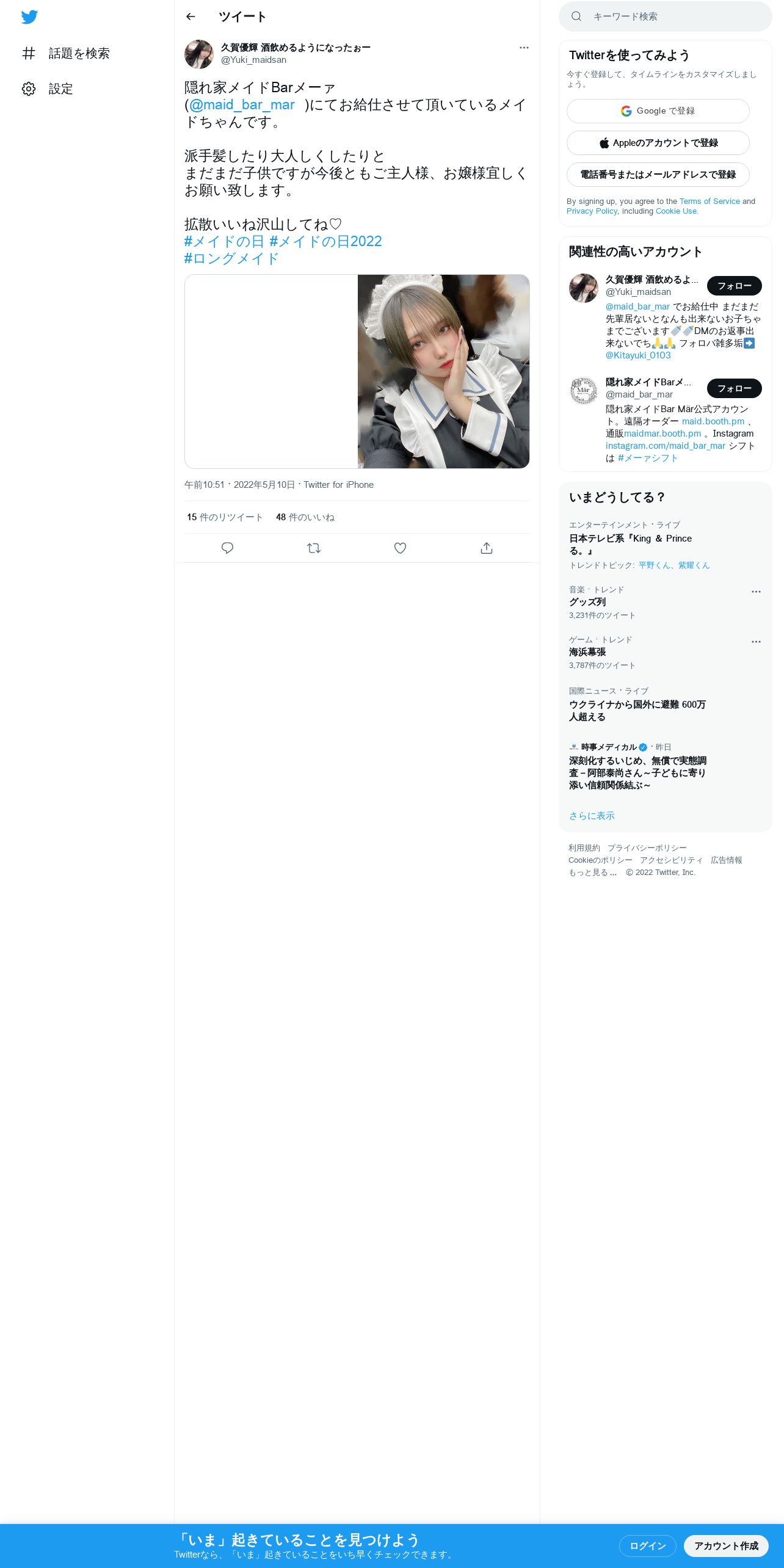 取得元URL: https://twitter.com:443/Yuki_maidsan/status/1523979101488312320