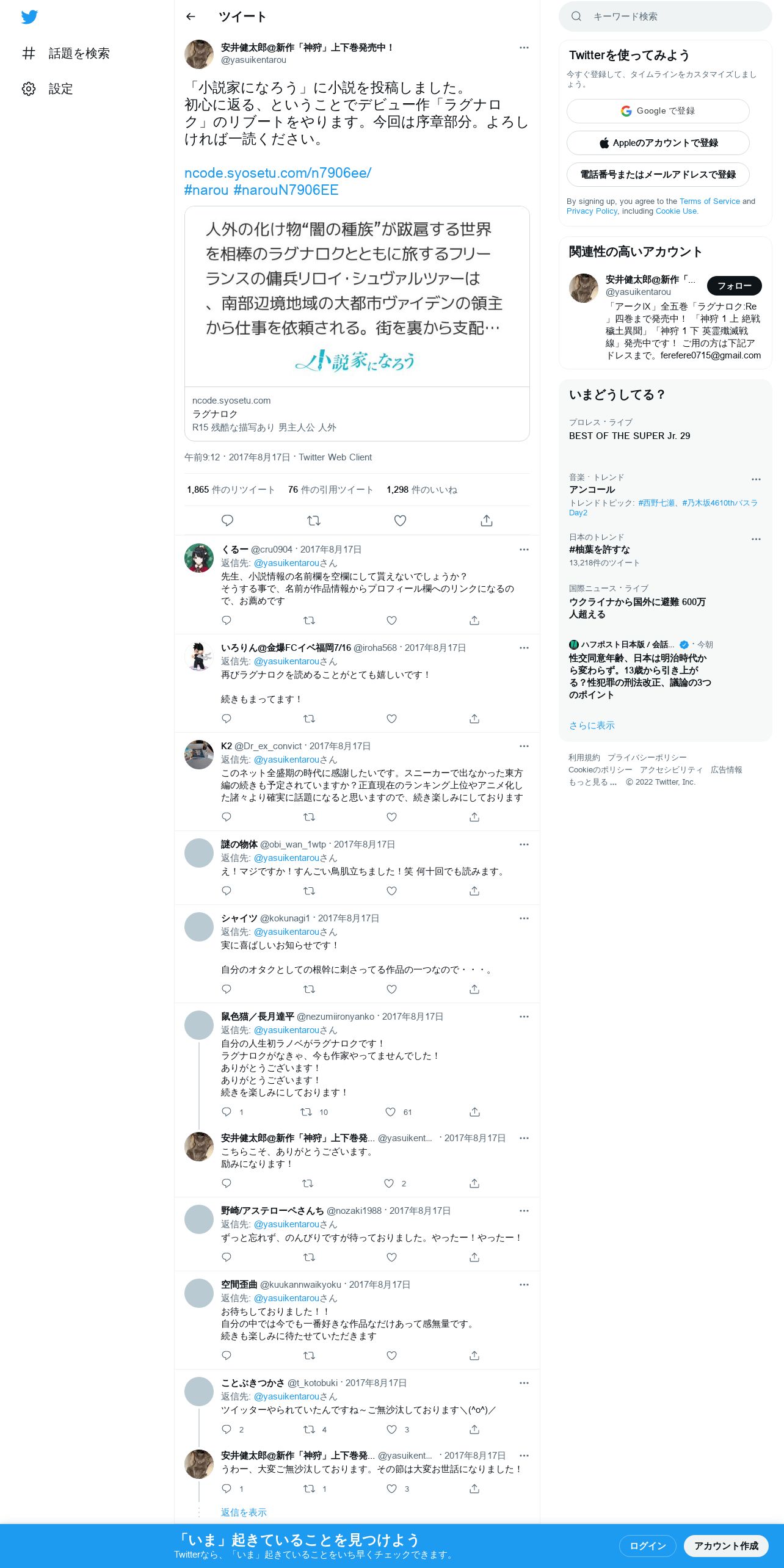 取得元URL: https://twitter.com:443/yasuikentarou/status/898110360925872128