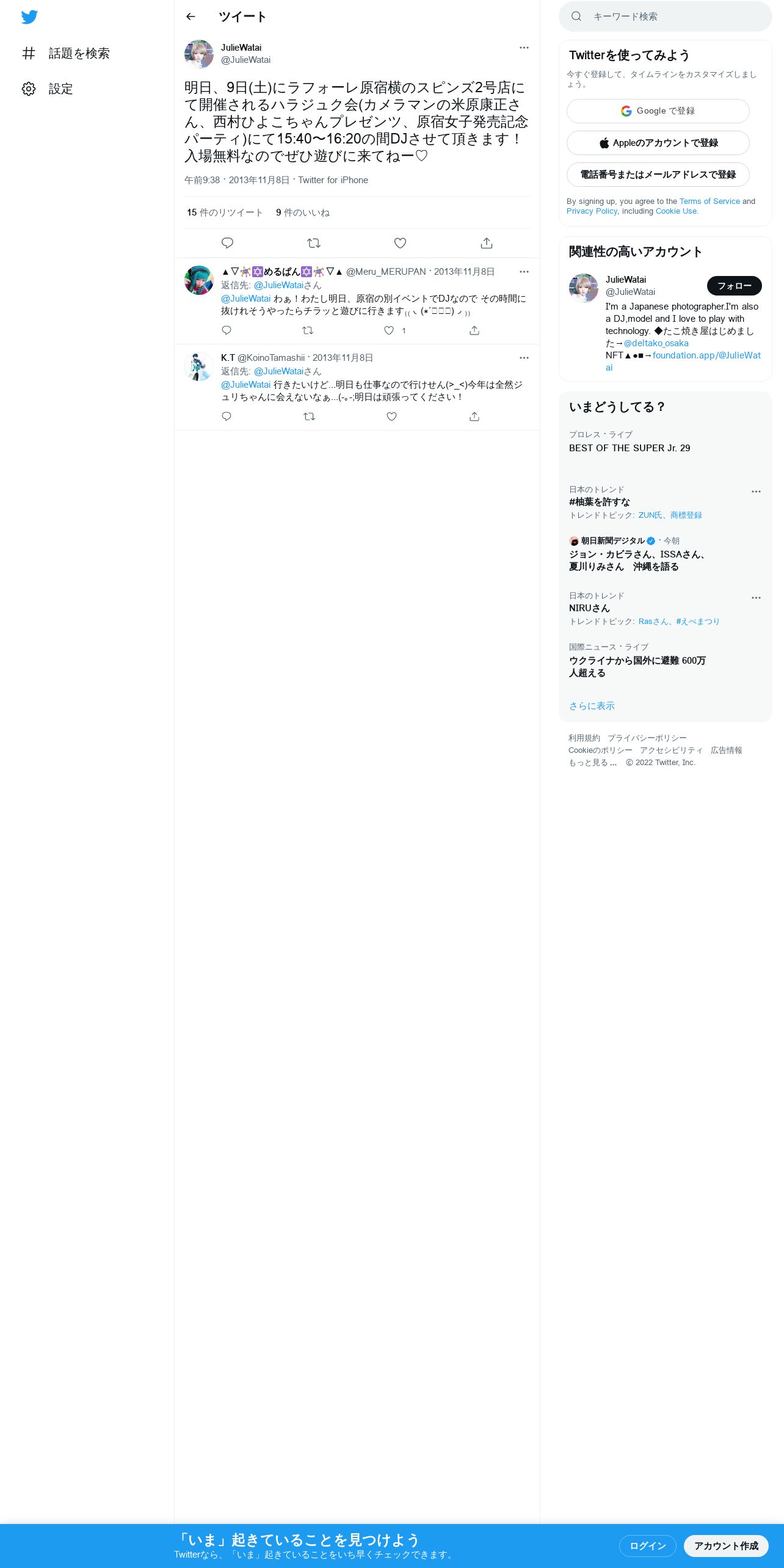 取得元URL: https://twitter.com:443/JulieWatai/status/398746281088000000