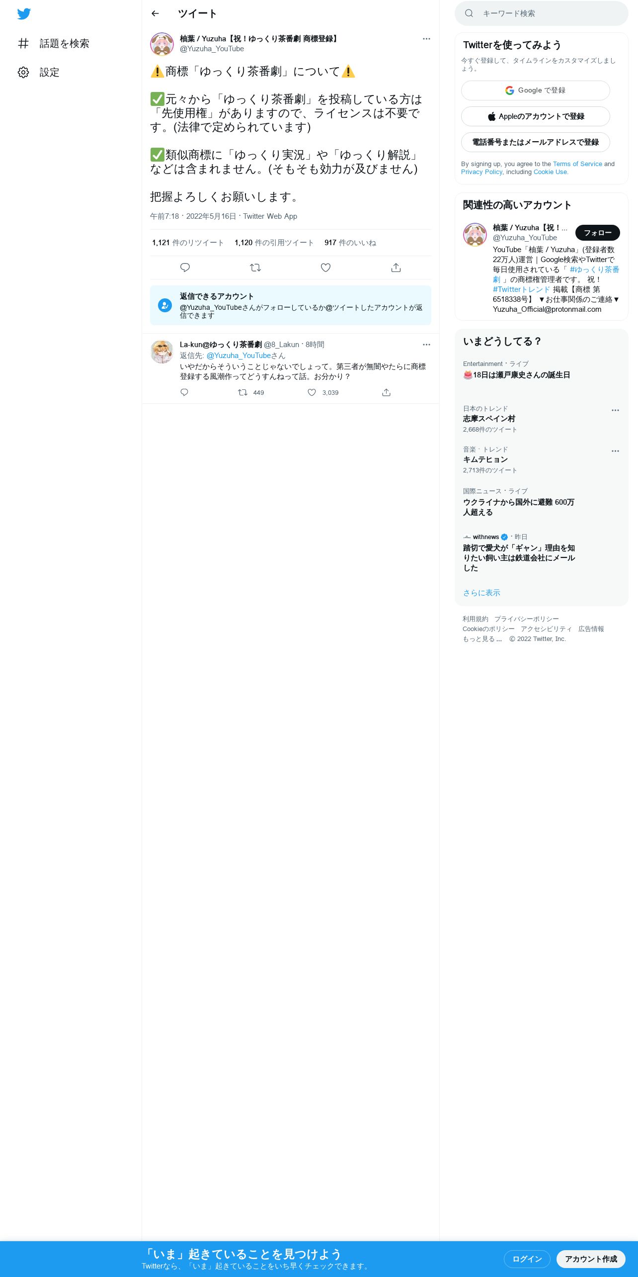 取得元URL: https://twitter.com:443/Yuzuha_YouTube/status/1526099665703227392
