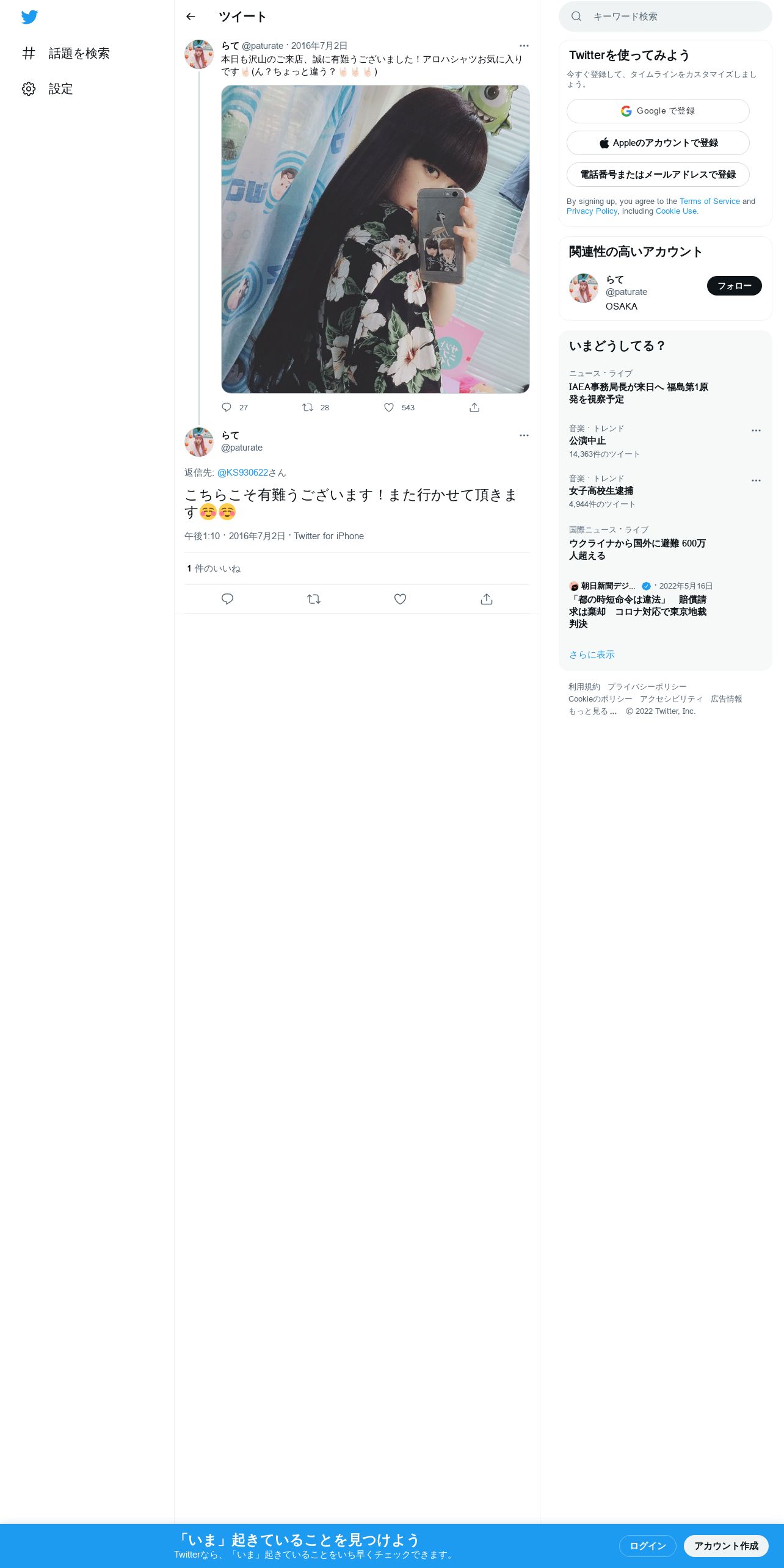 取得元URL: https://twitter.com:443/paturate/status/749228798881648641