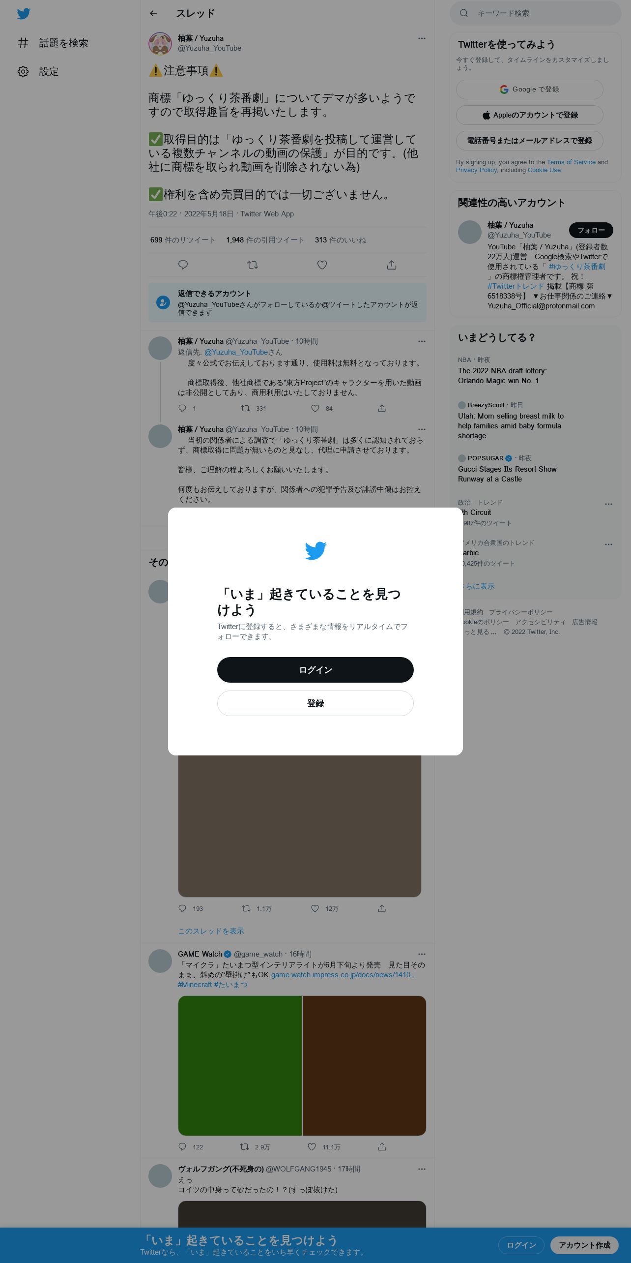 https://mobile.twitter.com:443/Yuzuha_YouTube/status/1526901086057279488?cxt=HHwWgMDRmdWc0rAqAAAA