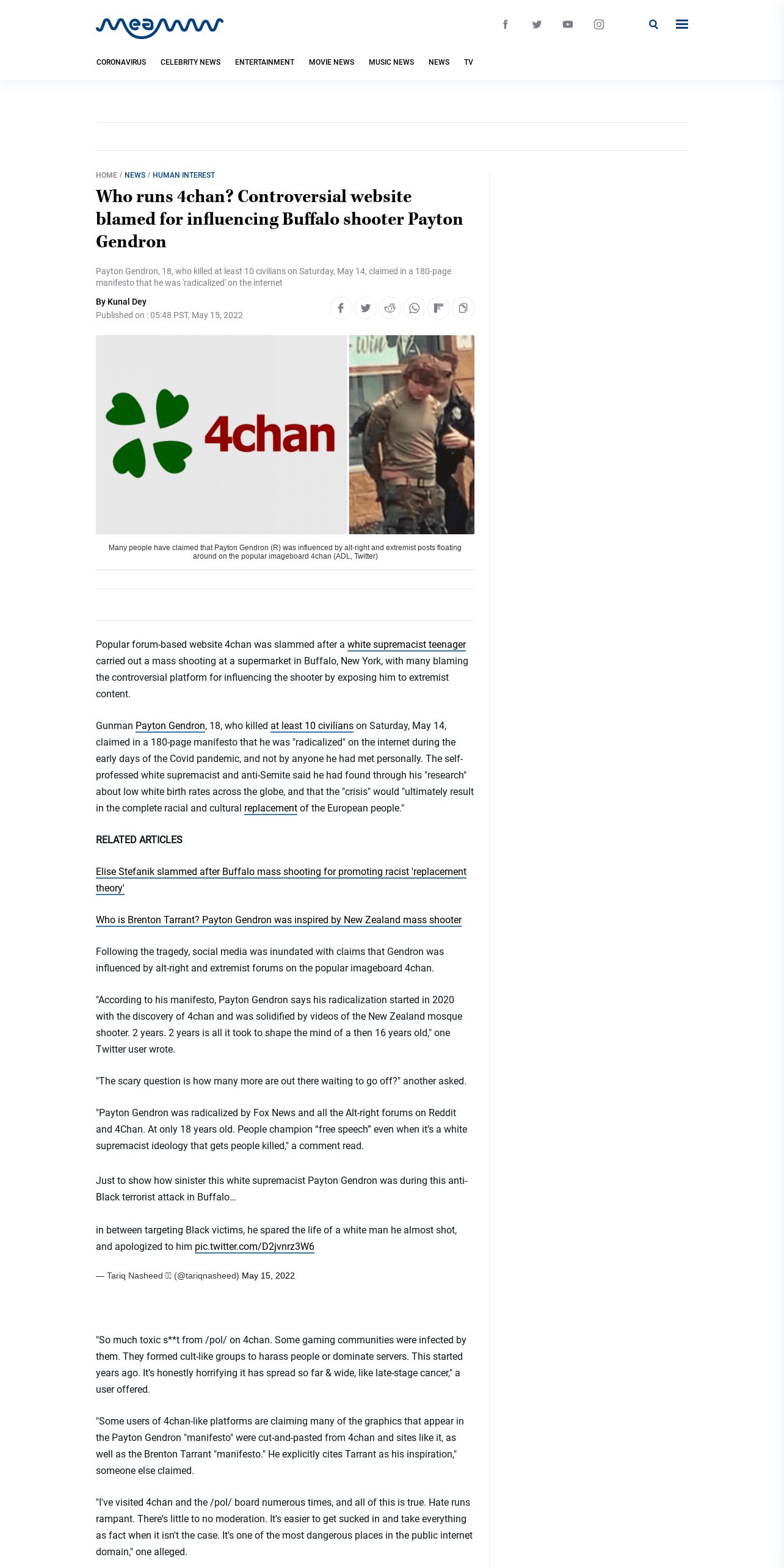 取得元URL: https://meaww.com:443/4-chan-blamed-influencing-payton-gendron-buffalo-shooting