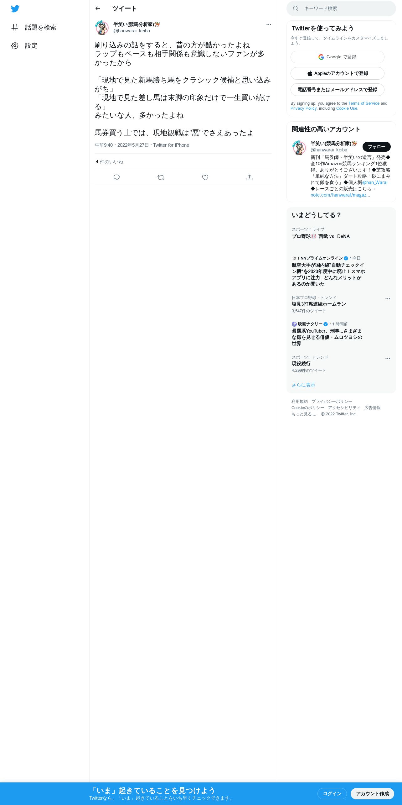 取得元URL: https://twitter.com:443/hanwarai_keiba/status/1530121779280490496
