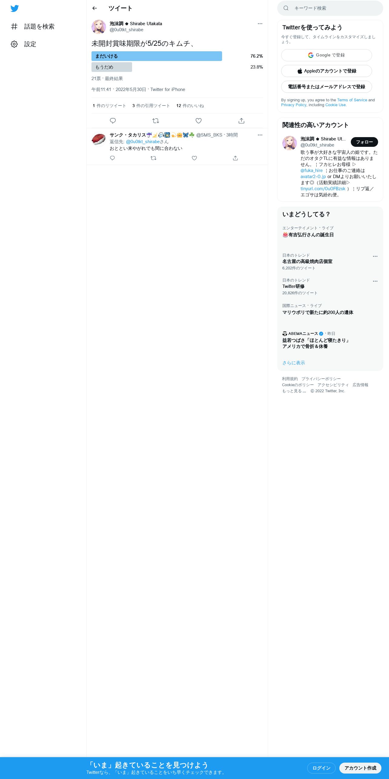取得元URL: https://twitter.com:443/0u0tkt_shirabe/status/1531239449614352384