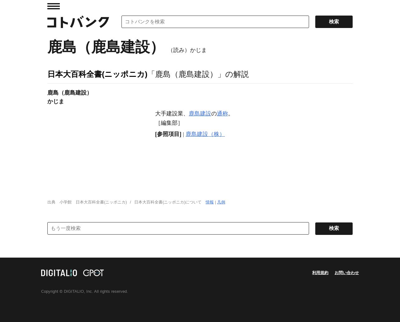 https://kotobank.jp:443/word/%E9%B9%BF%E5%B3%B6%28%E9%B9%BF%E5%B3%B6%E5%BB%BA%E8%A8%AD%29-1517189
