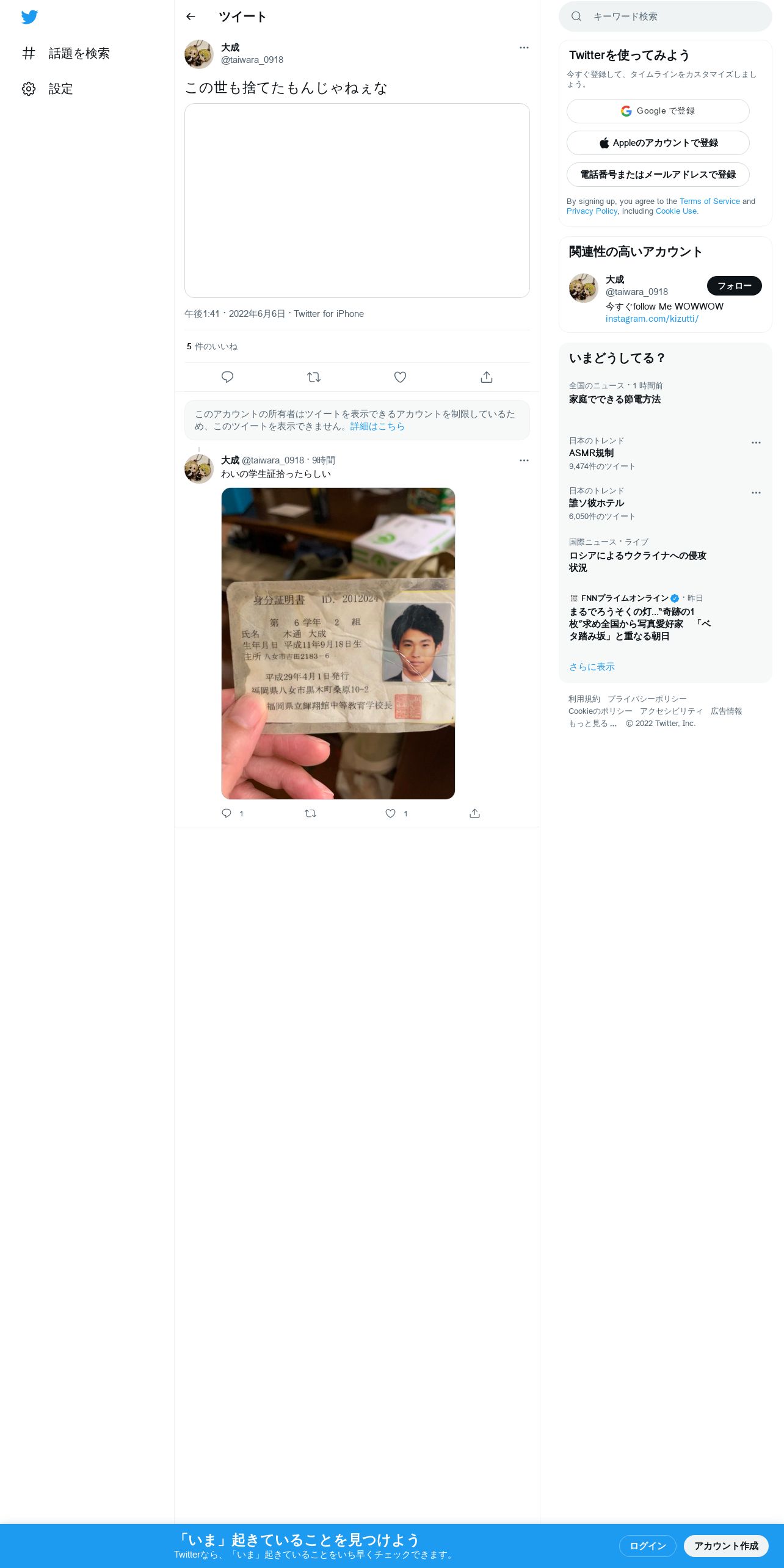 取得元URL: https://twitter.com:443/taiwara_0918/status/1533806233169195011