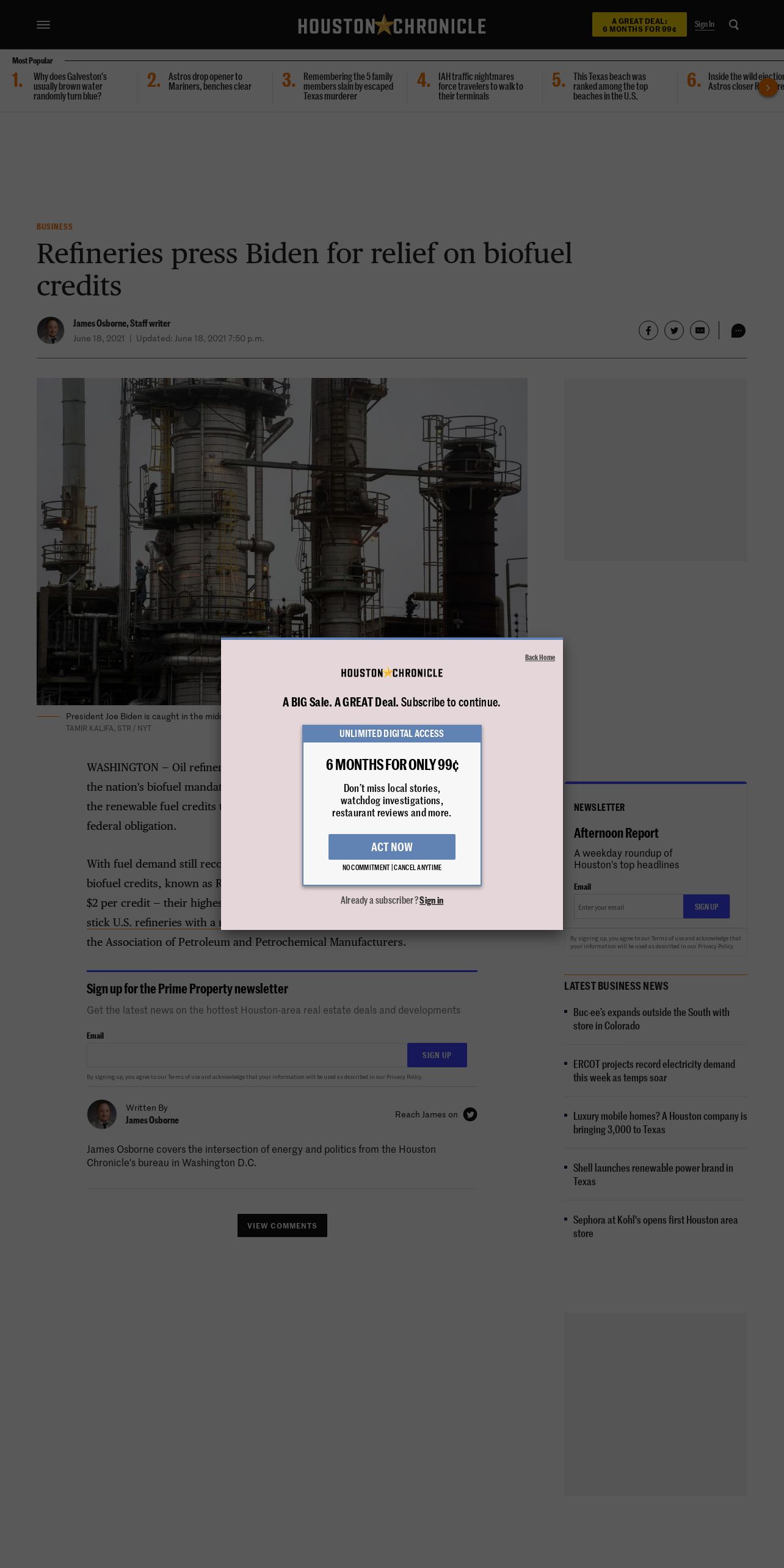 https://www.houstonchronicle.com:443/business/article/Refineries-press-Biden-for-relief-on-biofuel-16258794.php