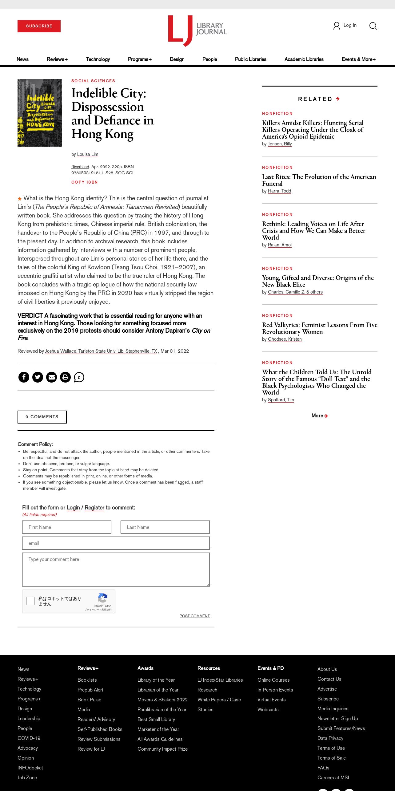 https://www.libraryjournal.com:443/review/indelible-city-dispossession-and-defiance-in-hong-kong-2134039