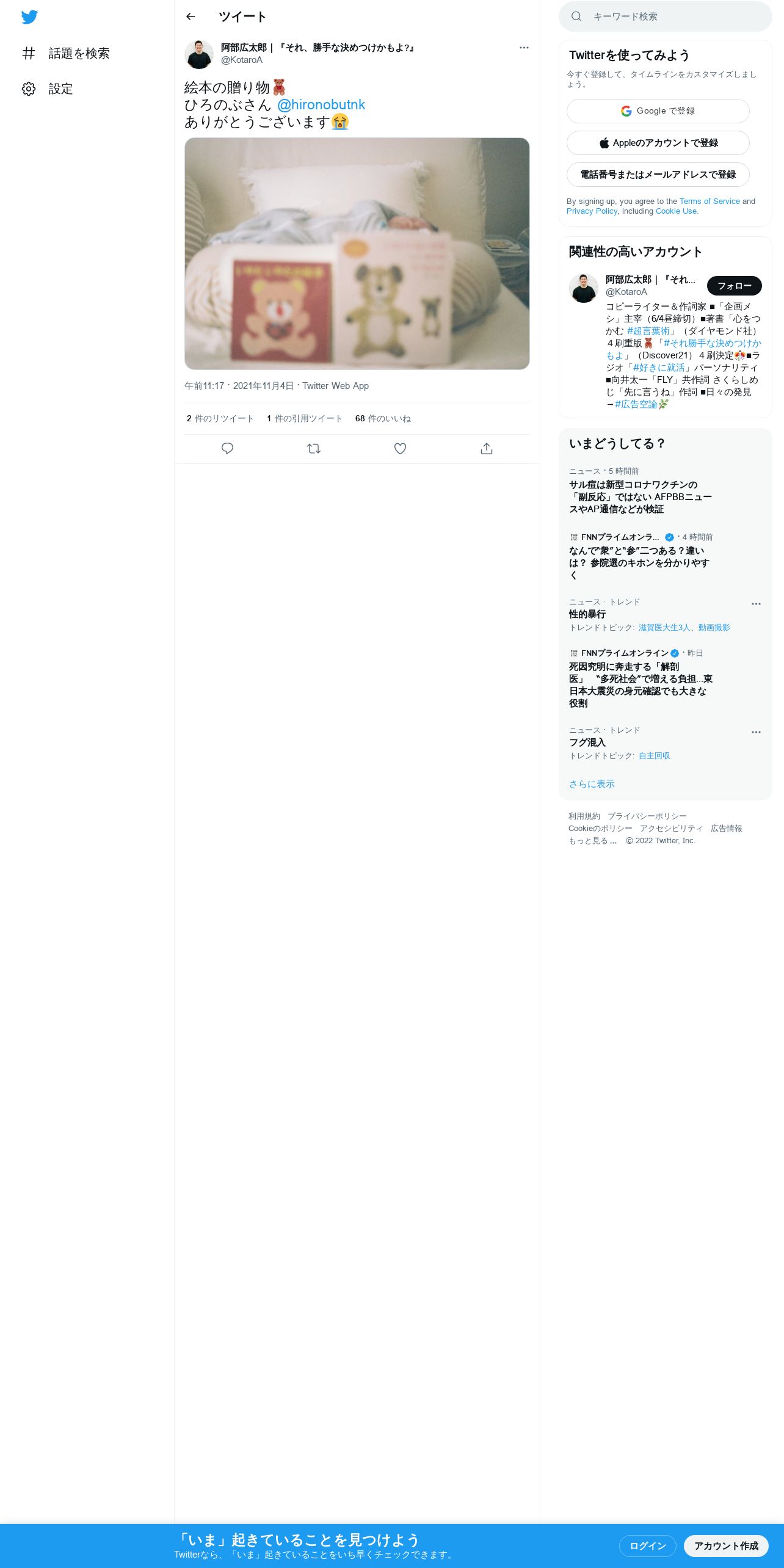 取得元URL: https://twitter.com:443/KotaroA/status/1456218969115795463