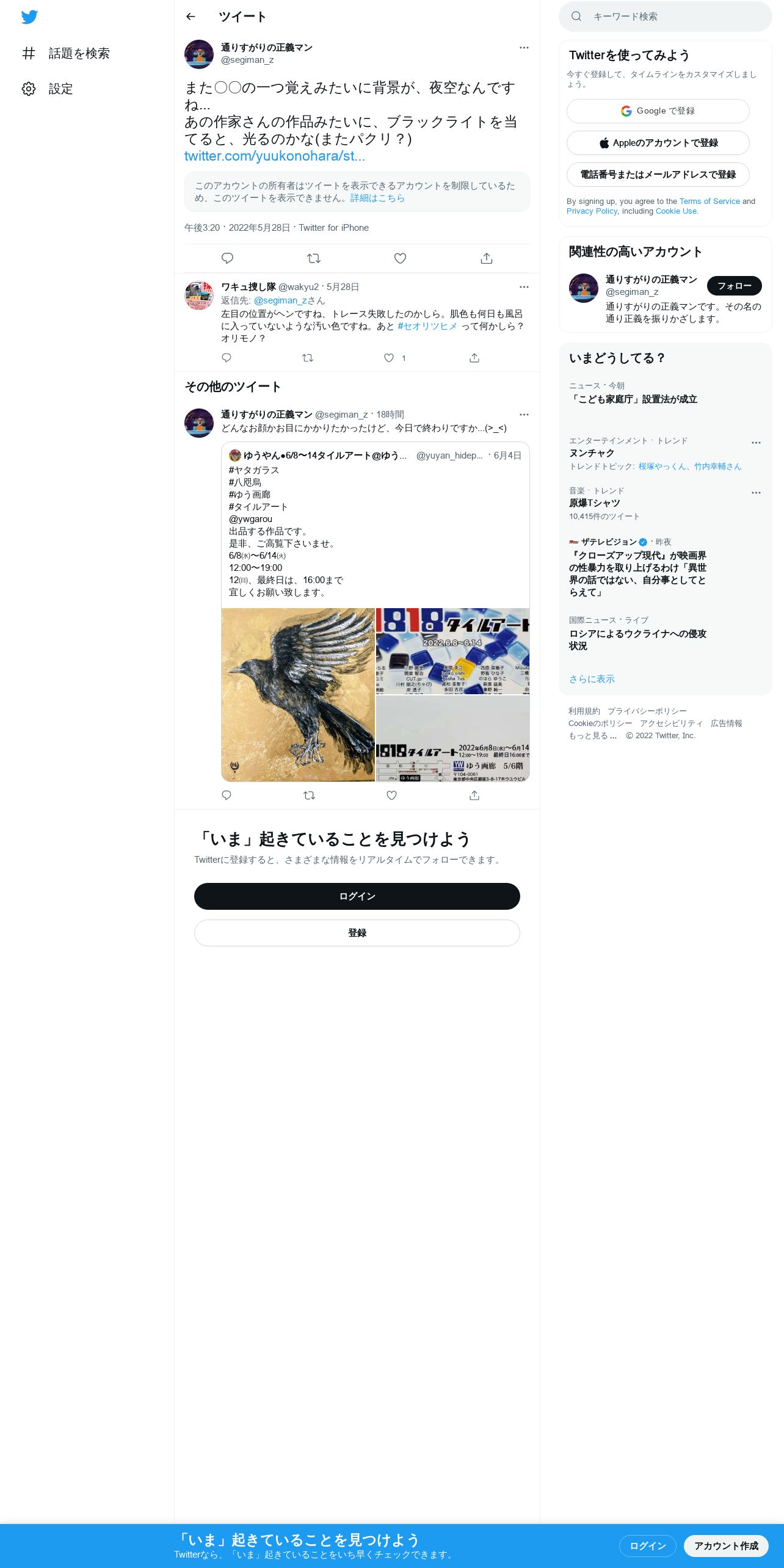 https://twitter.com:443/segiman_z/status/1530569733615288320?cxt=HHwWgIDUwYfE1r0qAAAA
