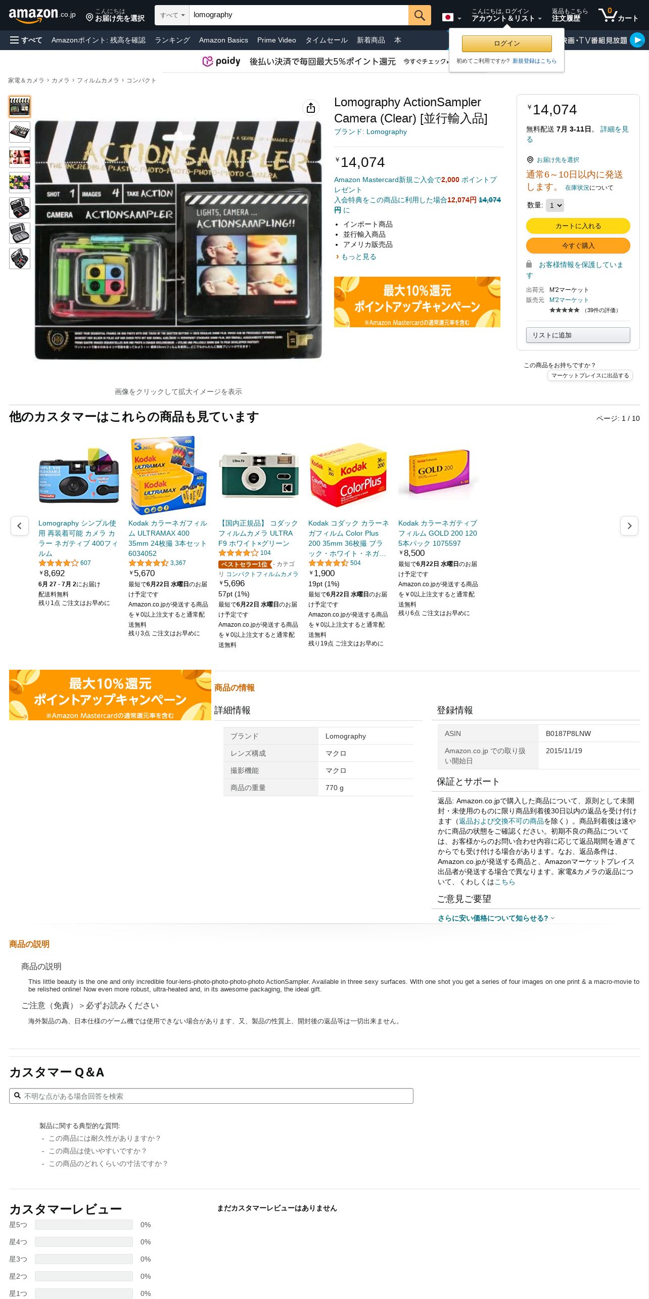 取得元URL: https://www.amazon.co.jp:443/Lomography-ActionSampler-Camera-Clear-%E4%B8%A6%E8%A1%8C%E8%BC%B8%E5%85%A5%E5%93%81/dp/B0187P8LNW/ref=sr_1_8?__mk_ja_JP=%E3%82%AB%E3%82%BF%E3%82%AB%E3%83%8A&keywords=lomography&m=AH7PX6I7PSS8S&qid=1655701390&s=merchant-items&sr=1-8