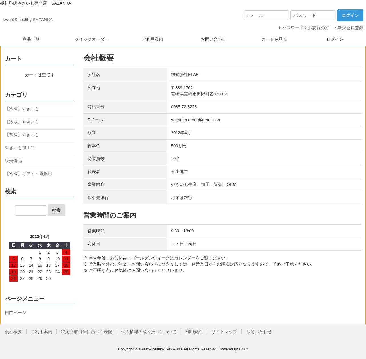 取得元URL: https://sazanka-yakiimo.bcart.jp:443/corporate.php
