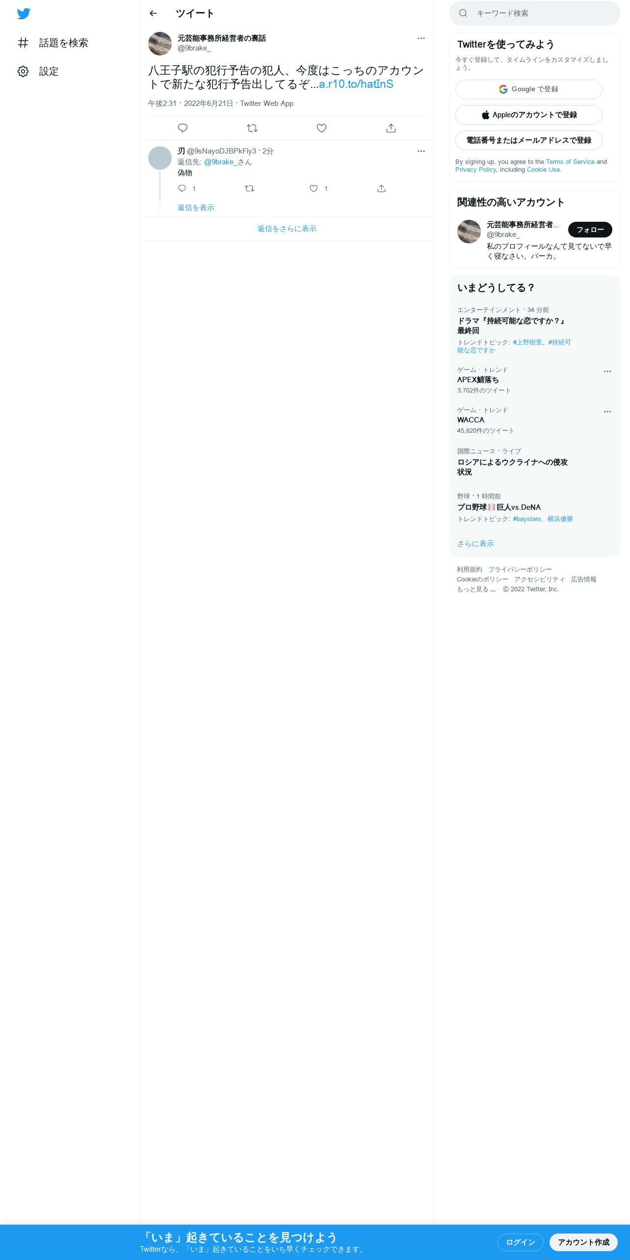 取得元URL: https://twitter.com:443/9brake_/status/1539254562028236800