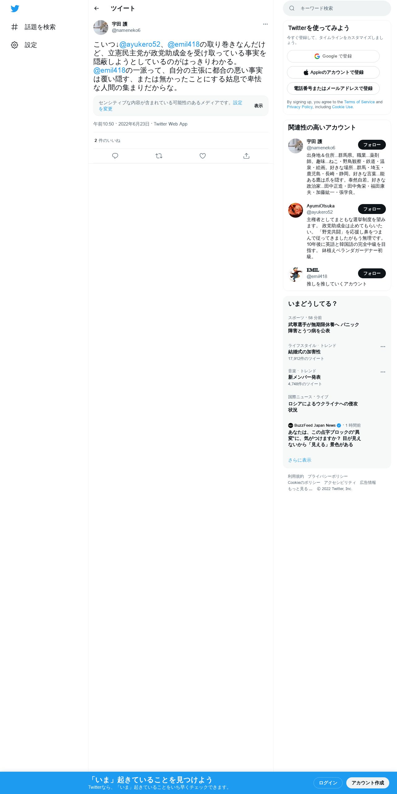 取得元URL: https://twitter.com:443/nameneko6/status/1539923747053789184
