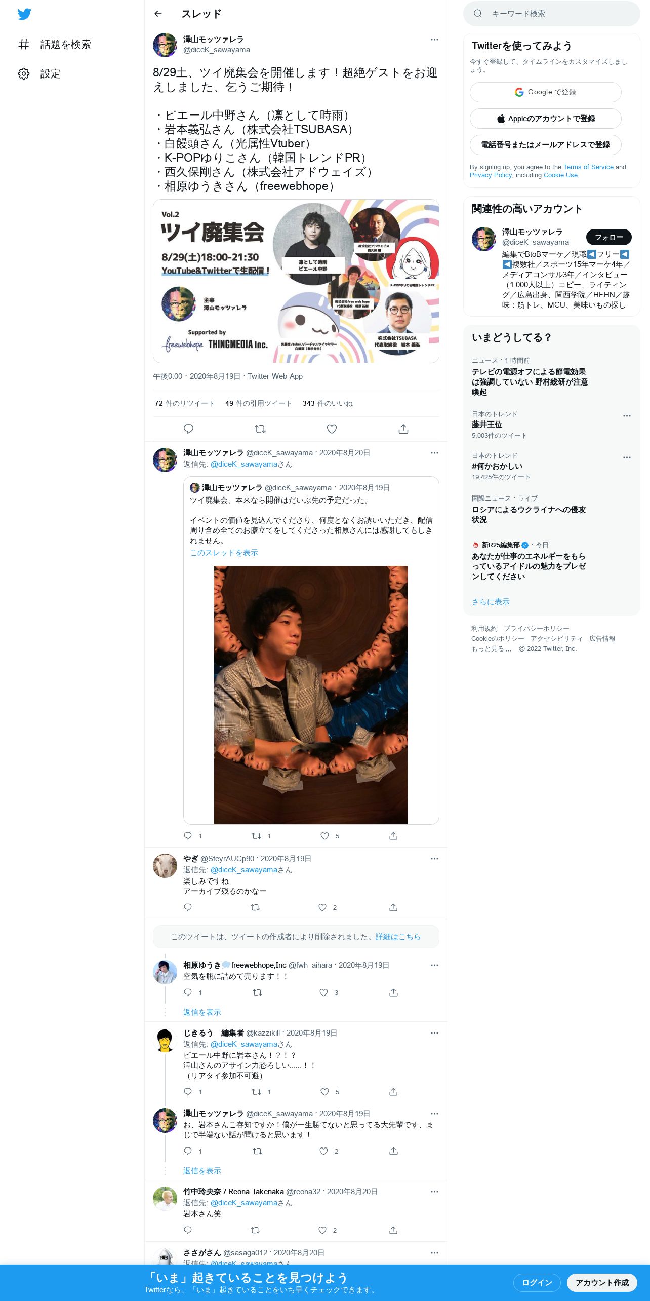 取得元URL: https://twitter.com:443/diceK_sawayama/status/1296054311366008833