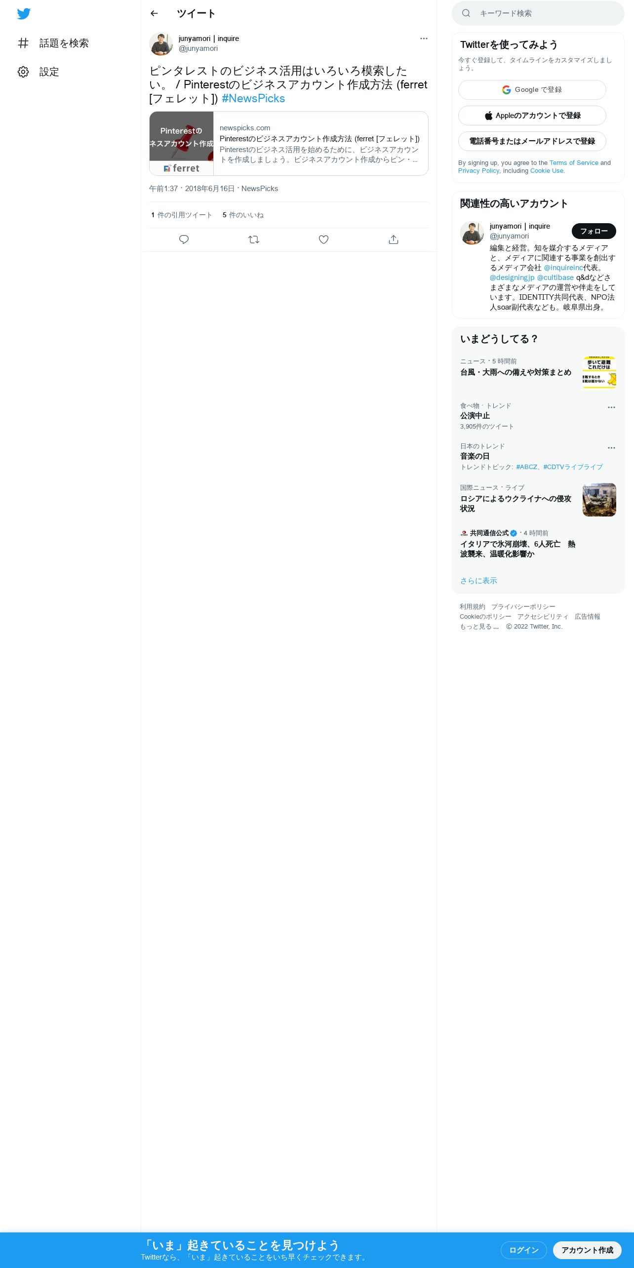 取得元URL: https://twitter.com:443/junyamori/status/1007799325248798720