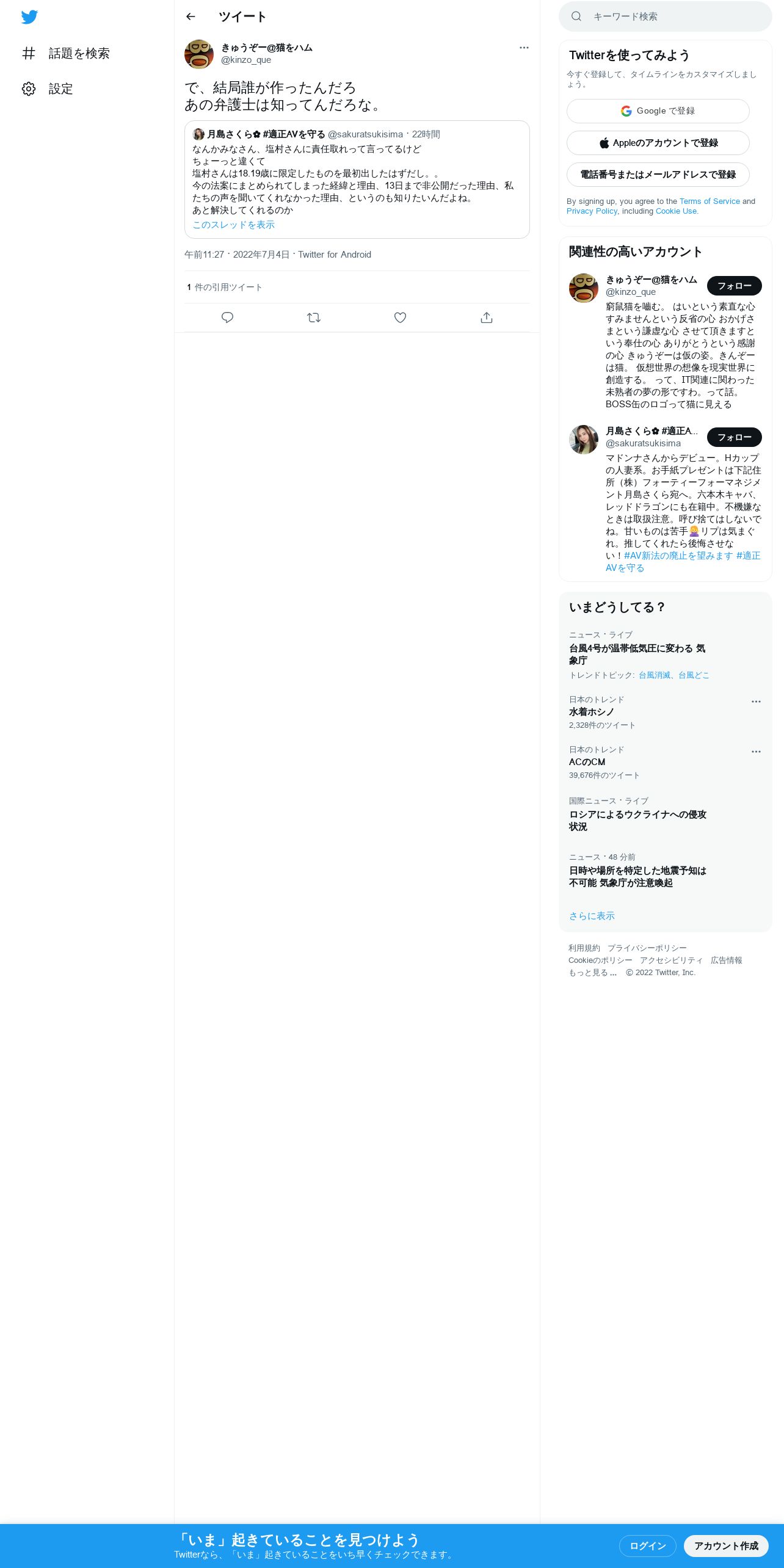 取得元URL: https://twitter.com:443/kinzo_que/status/1543919300440125440