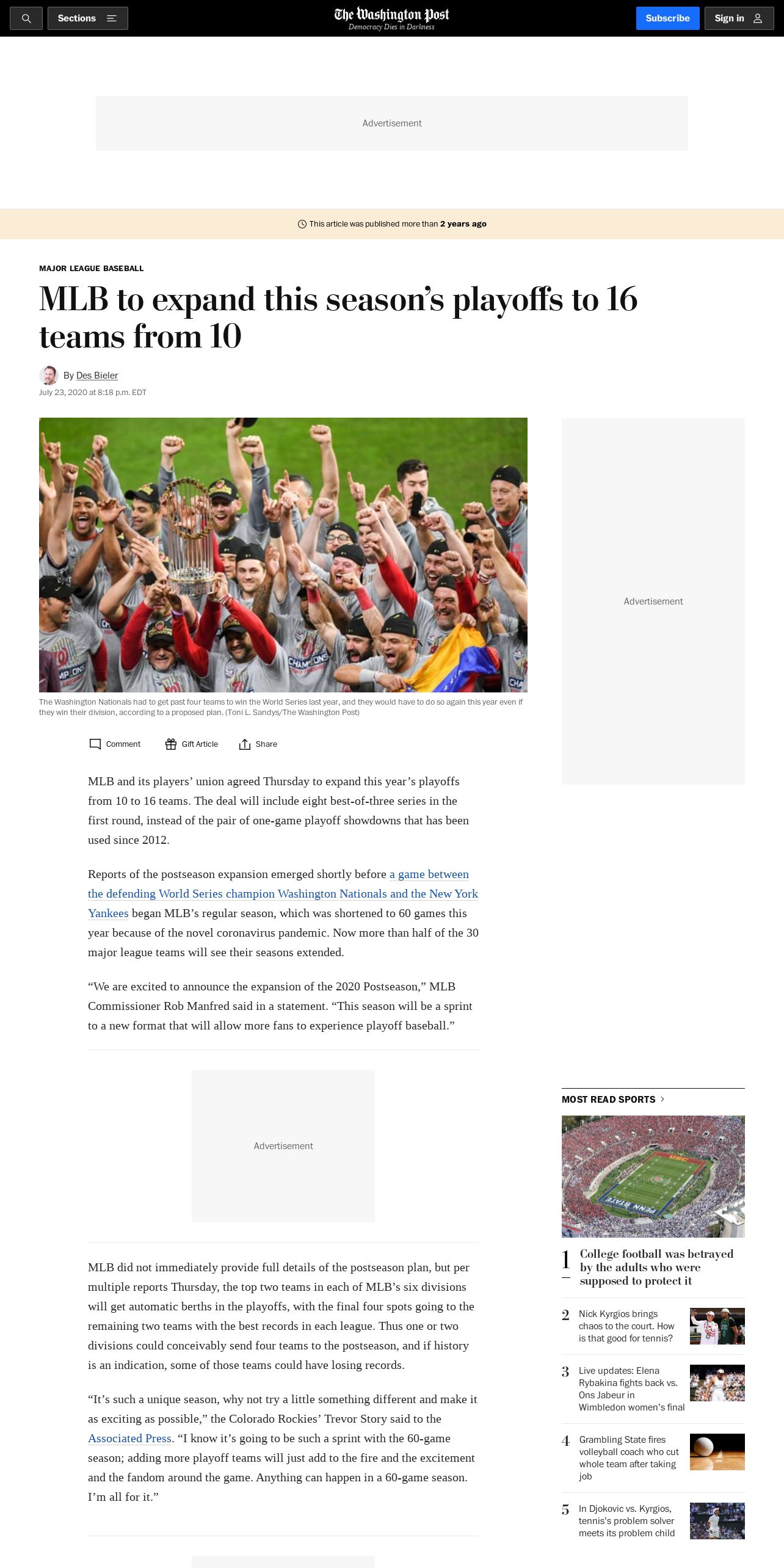 https://www.washingtonpost.com:443/sports/2020/07/23/mlb-reportedly-expand-this-seasons-playoffs-16-teams-10/