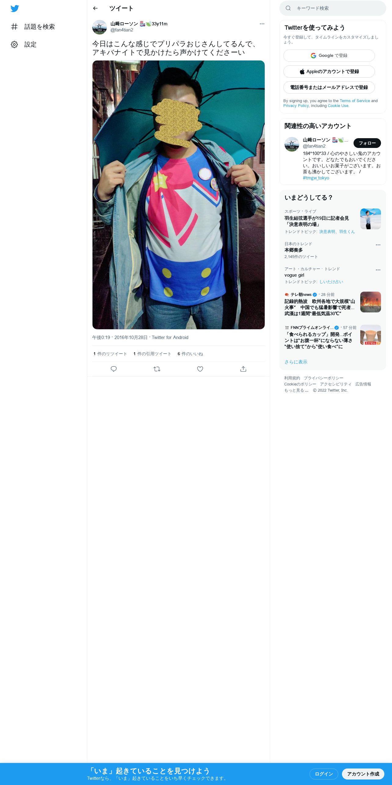 取得元URL: https://twitter.com:443/fan4tian2/status/791977693990440960
