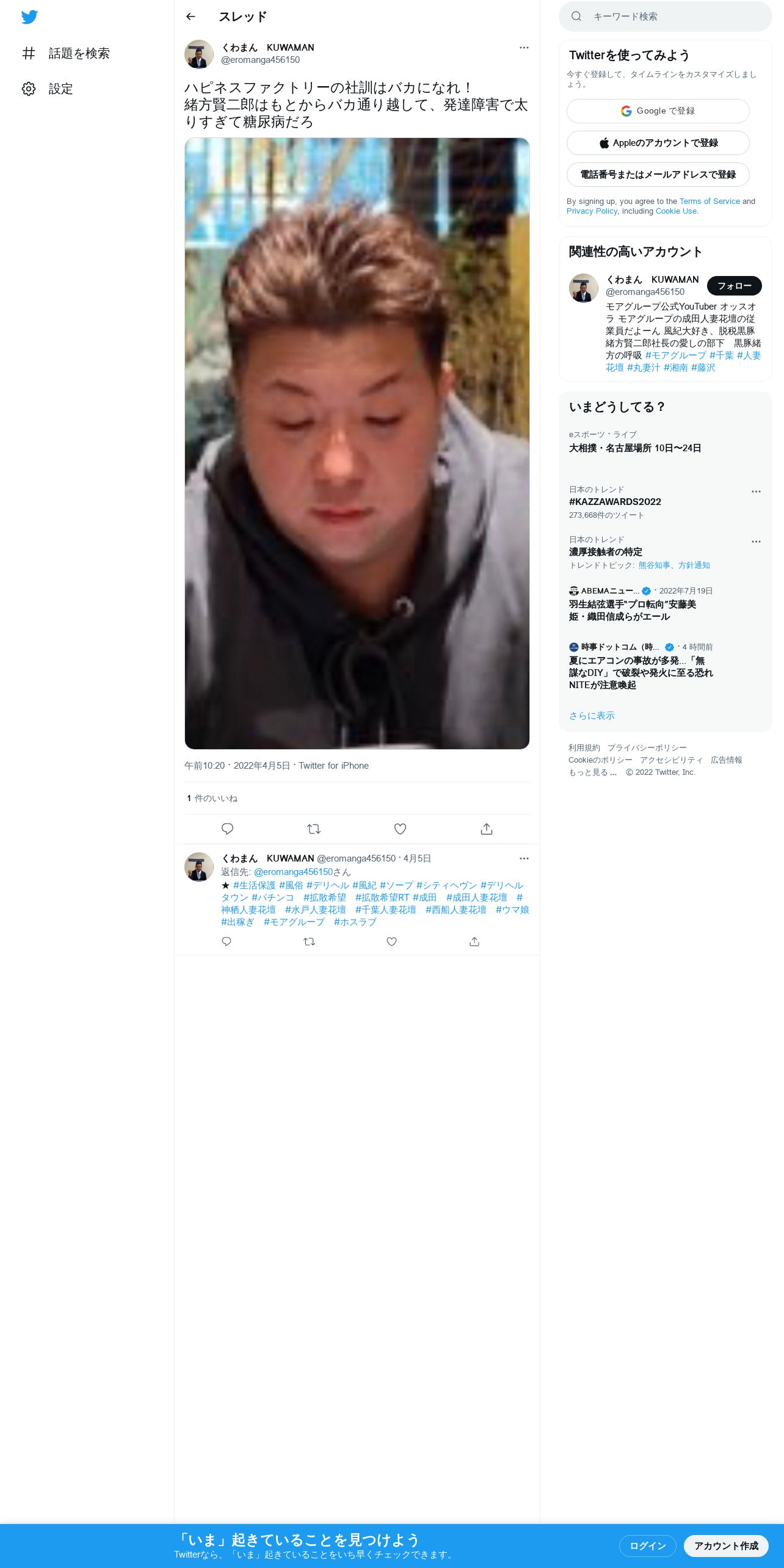 取得元URL: https://twitter.com:443/kuwamanfacto123/status/1511287650048946177