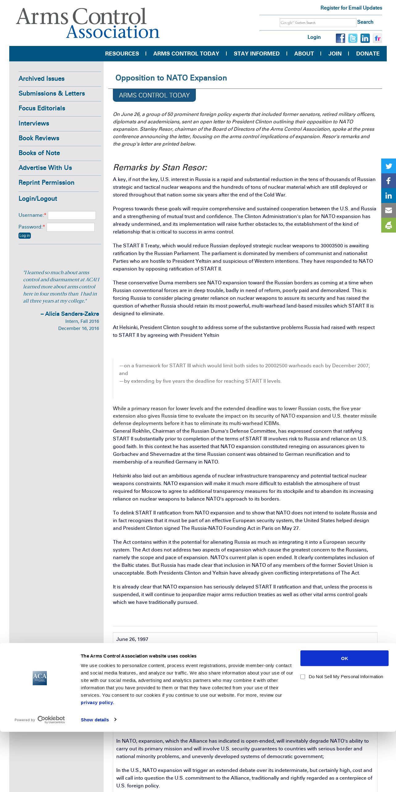 https://www.armscontrol.org:443/act/1997-06/arms-control-today/opposition-nato-expansion