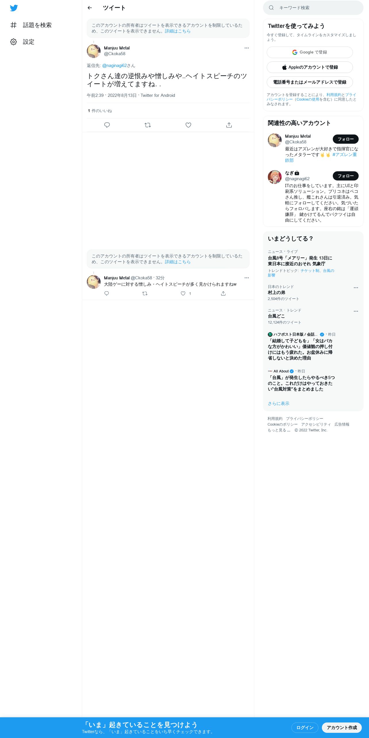 取得元URL: https://twitter.com:443/Ckoka58/status/1558282025215225856
