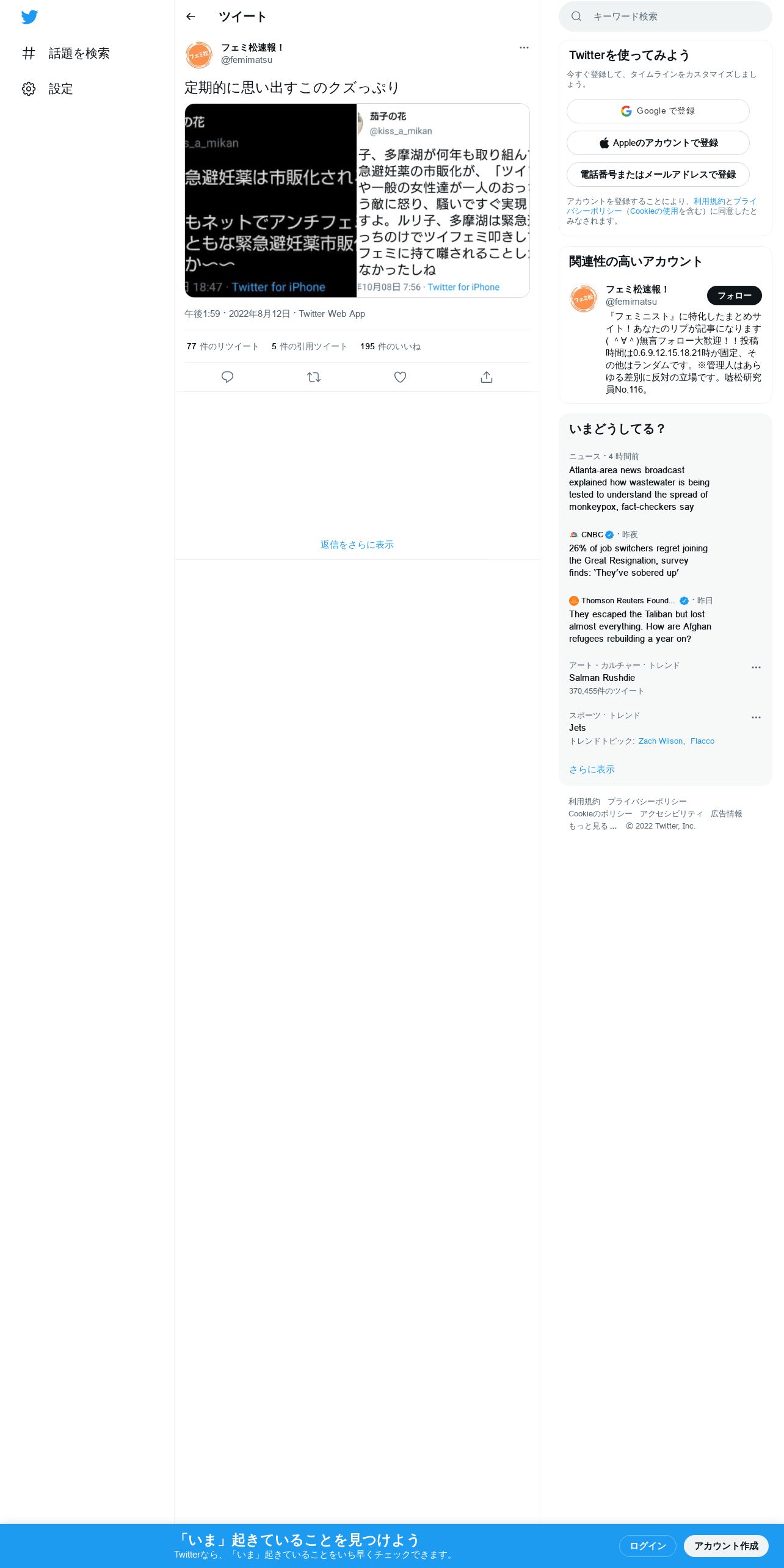https://mobile.twitter.com:443/femimatsu/status/1558090773244956672