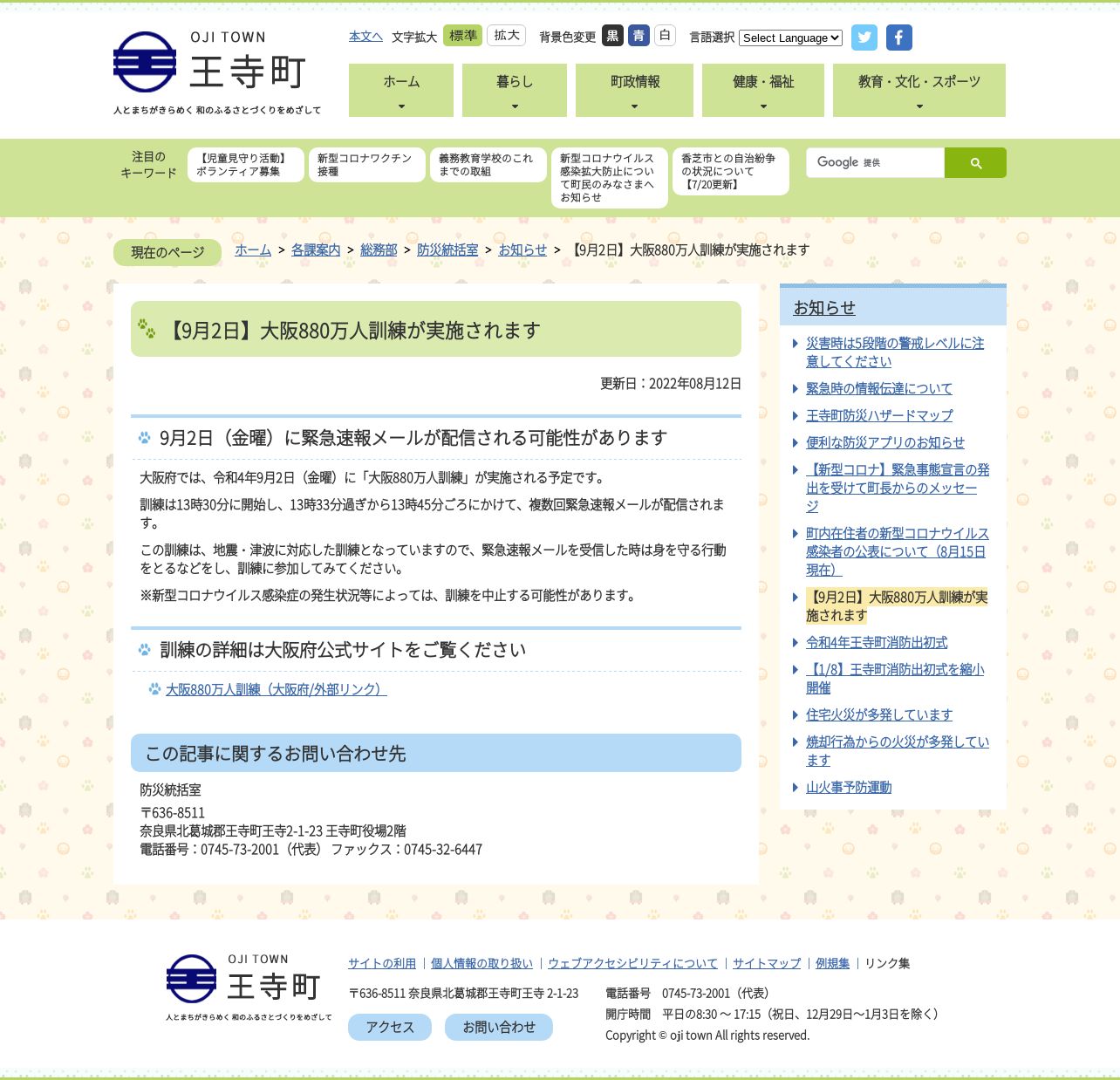 https://www.town.oji.nara.jp:443/kakuka/somu/kikikanri/information/1895.html