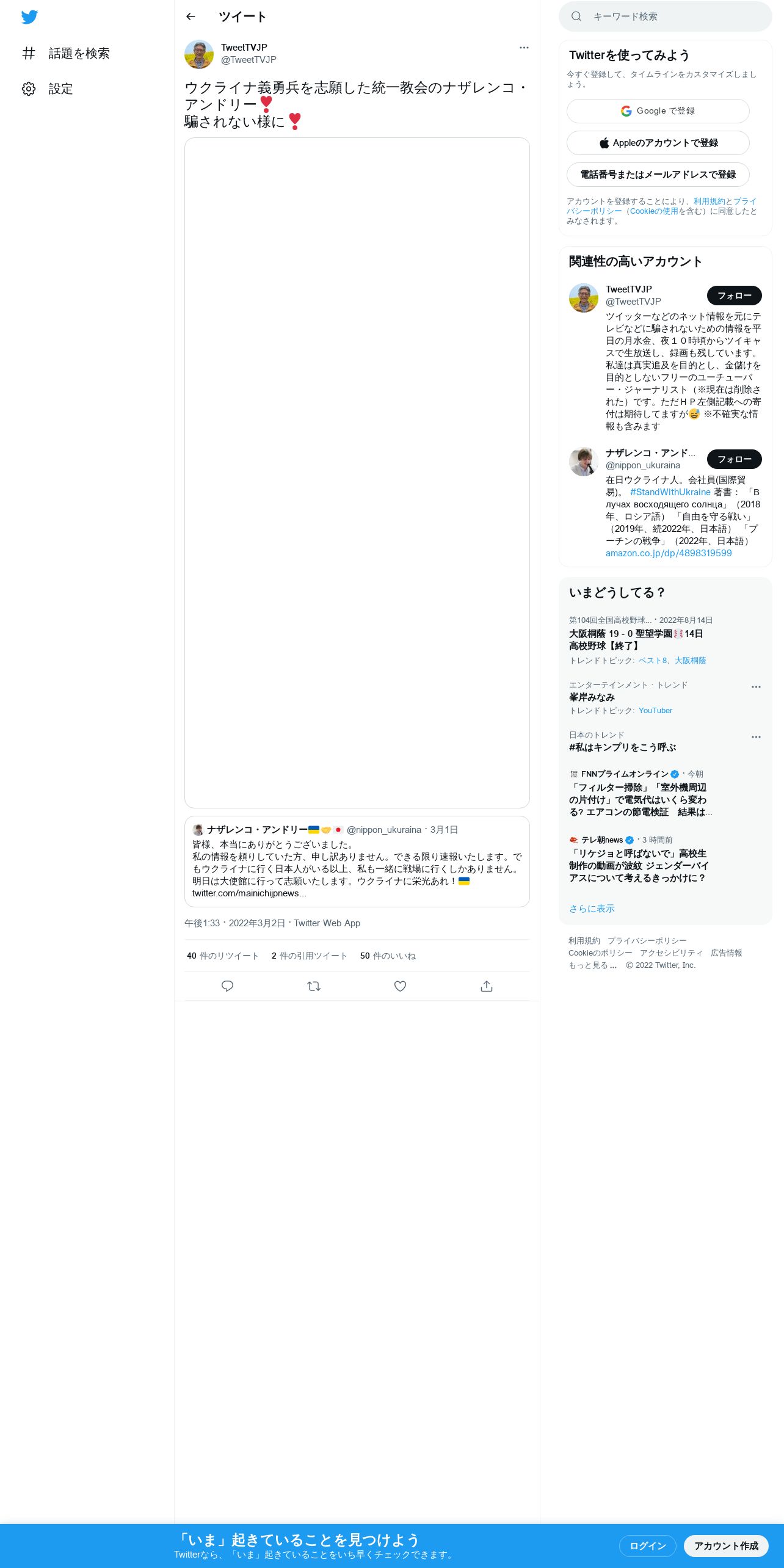 取得元URL: https://twitter.com:443/TweetTVJP/status/1499015122521853952