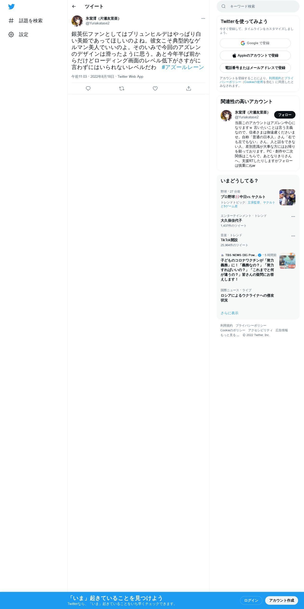 取得元URL: https://twitter.com:443/Yuriakatase2/status/1560220916831113216