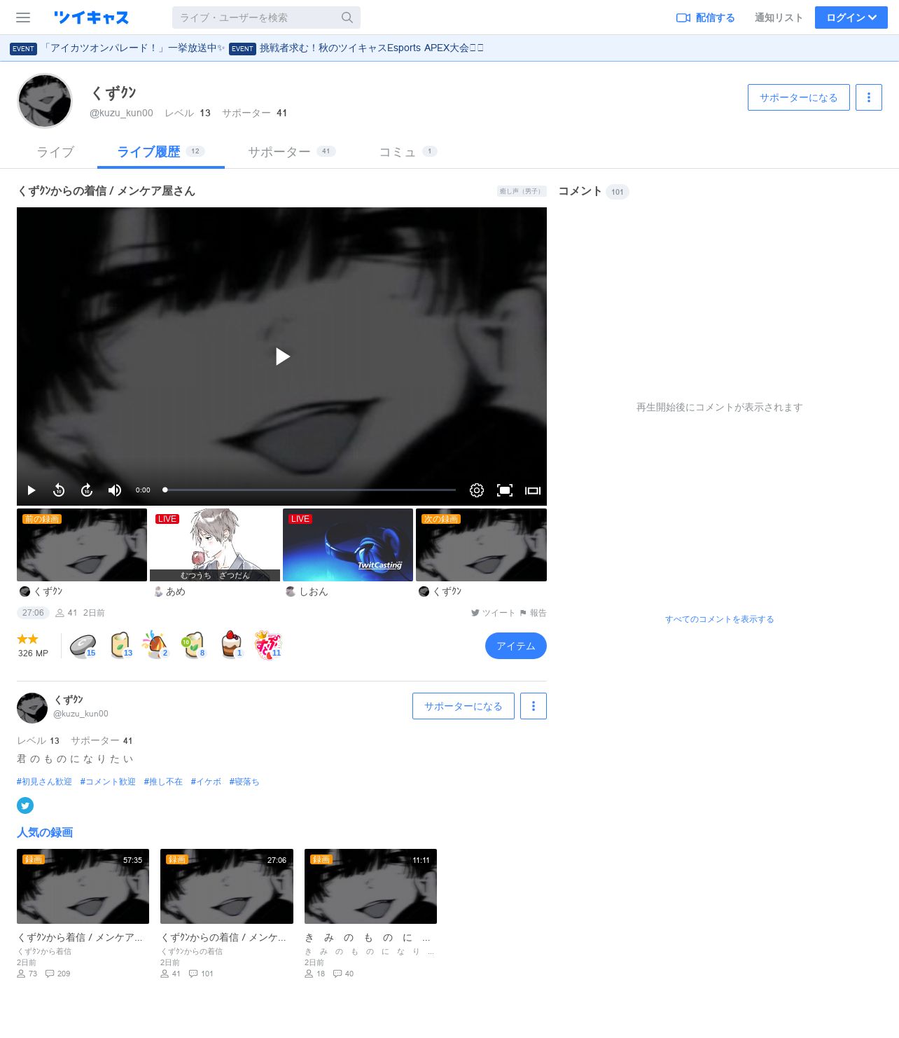 https://twitcasting.tv:443/kuzu_kun00/movie/742284854