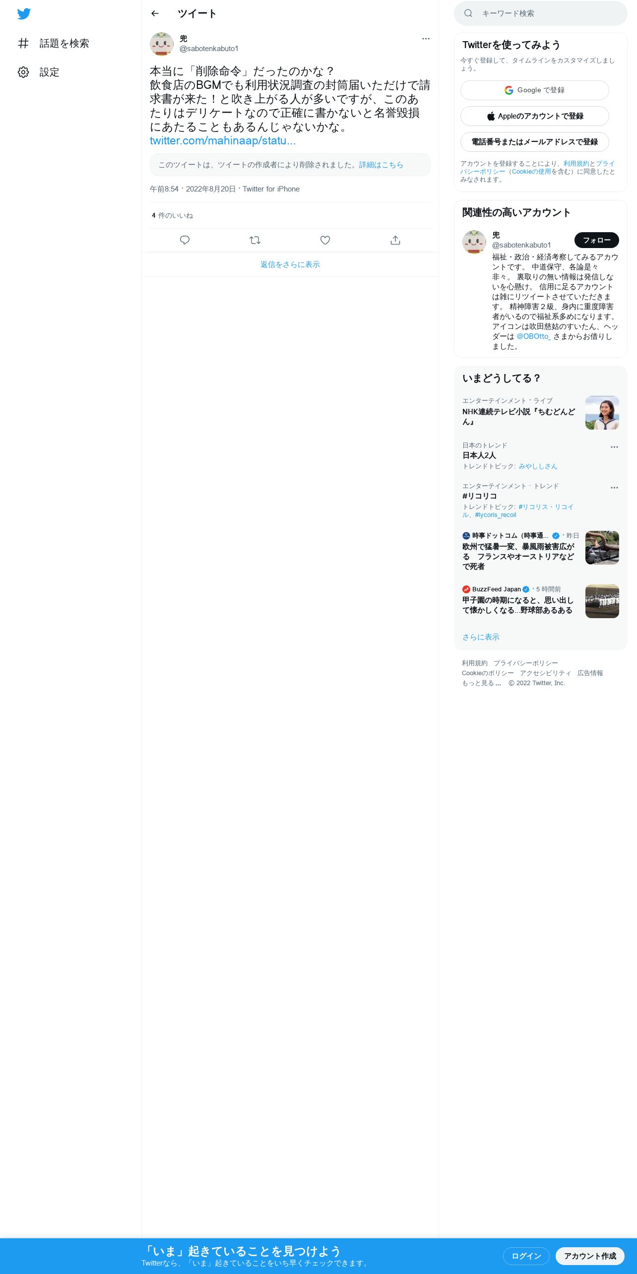 https://twitter.com:443/sabotenkabuto1/status/1560913185615400960