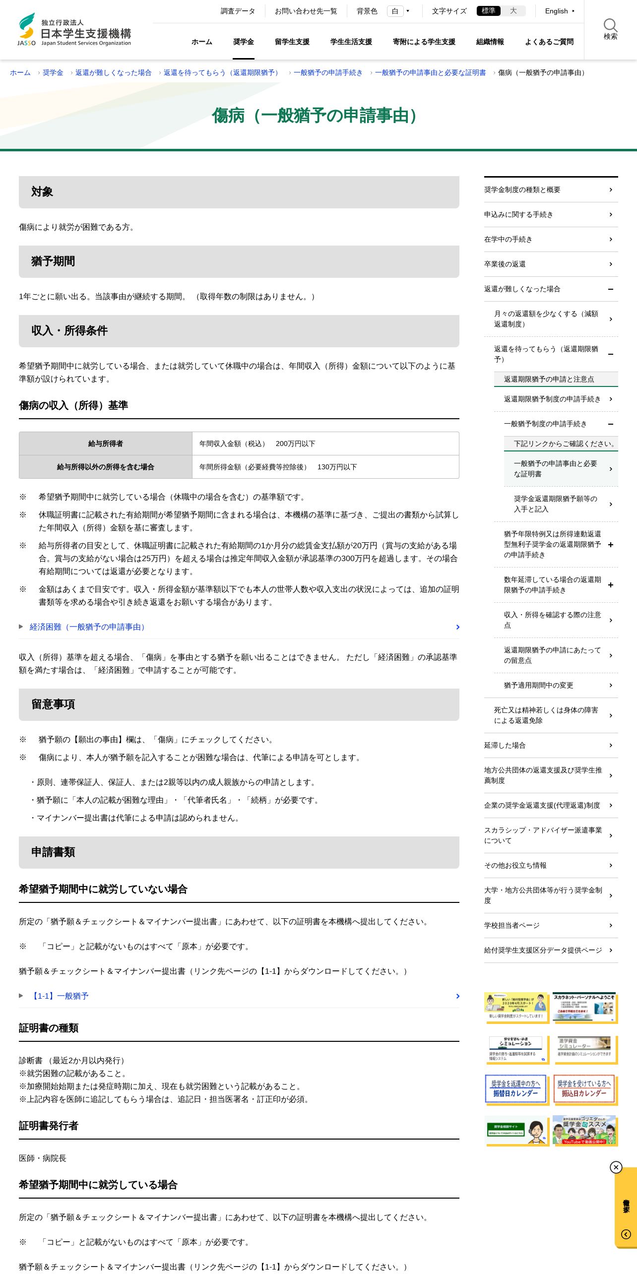 https://www.jasso.go.jp:443/shogakukin/henkan_konnan/yuyo/ippan/teishutusyo/shoubyou.html