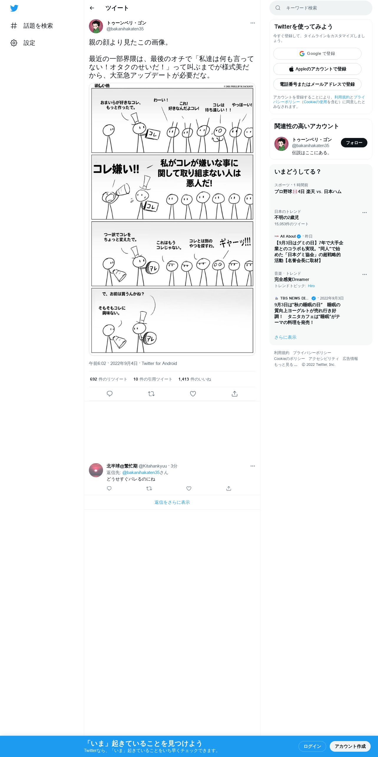 取得元URL: https://twitter.com:443/bakanihakaten35/status/1566305763387387904