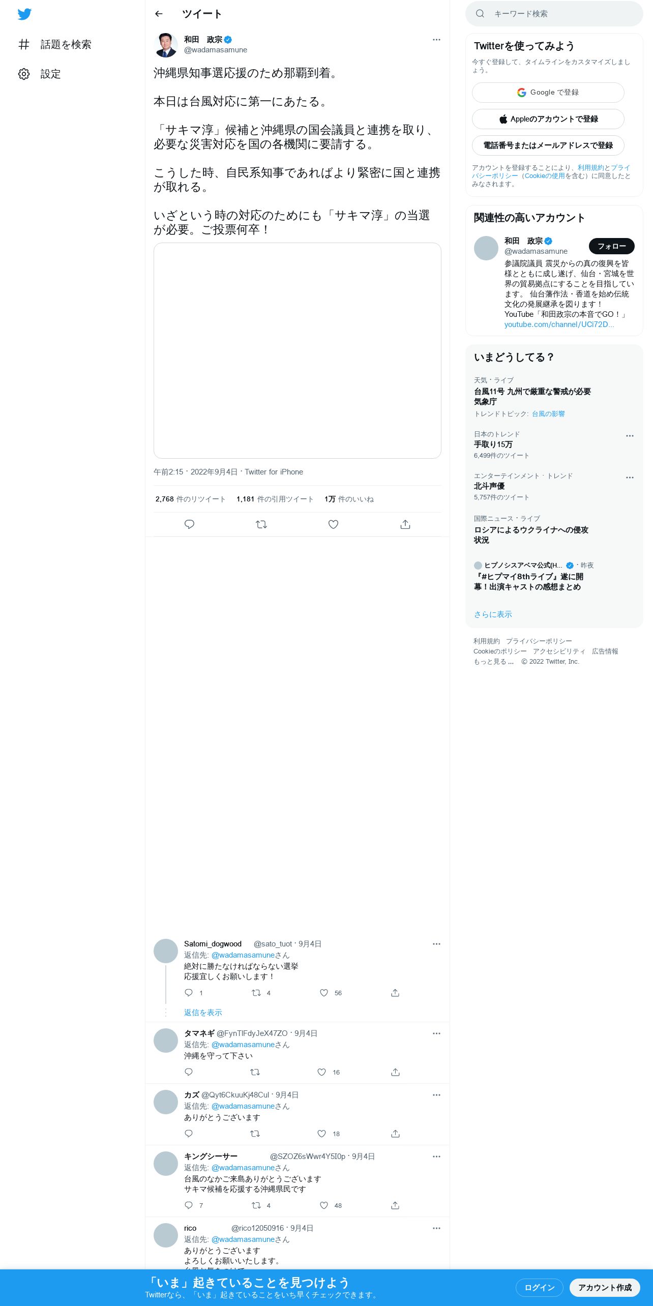 取得元URL: https://twitter.com:443/wadamasamune/status/1566248642955976704