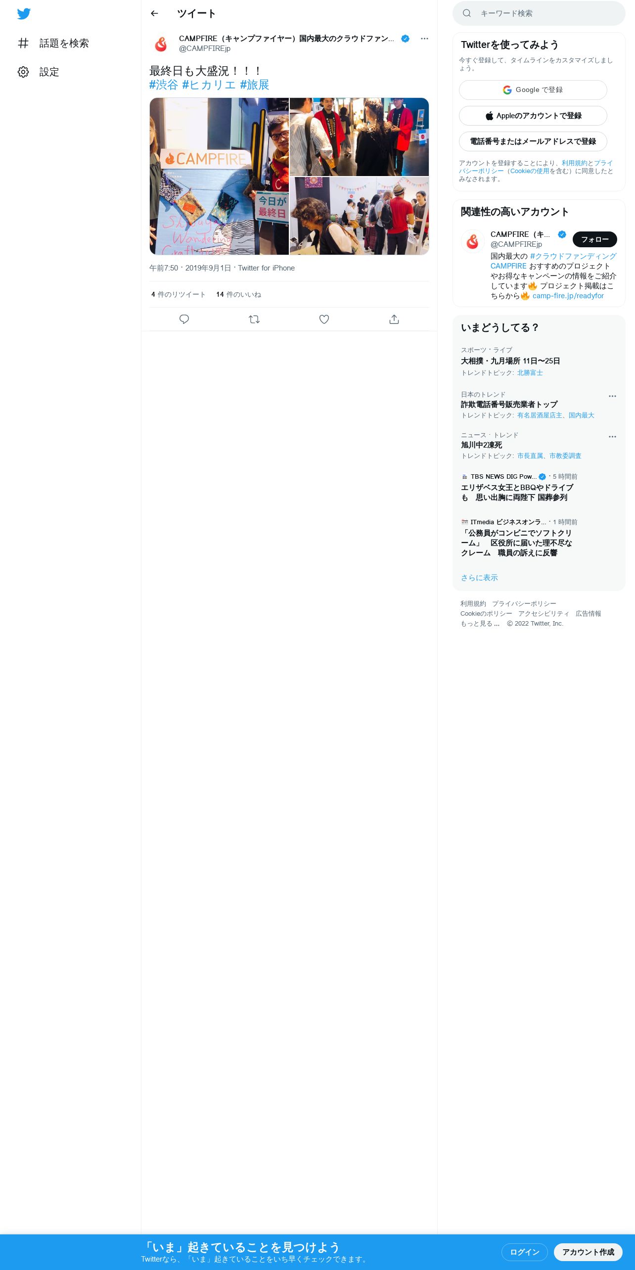 取得元URL: https://twitter.com:443/CAMPFIREjp/status/1168068695848968198