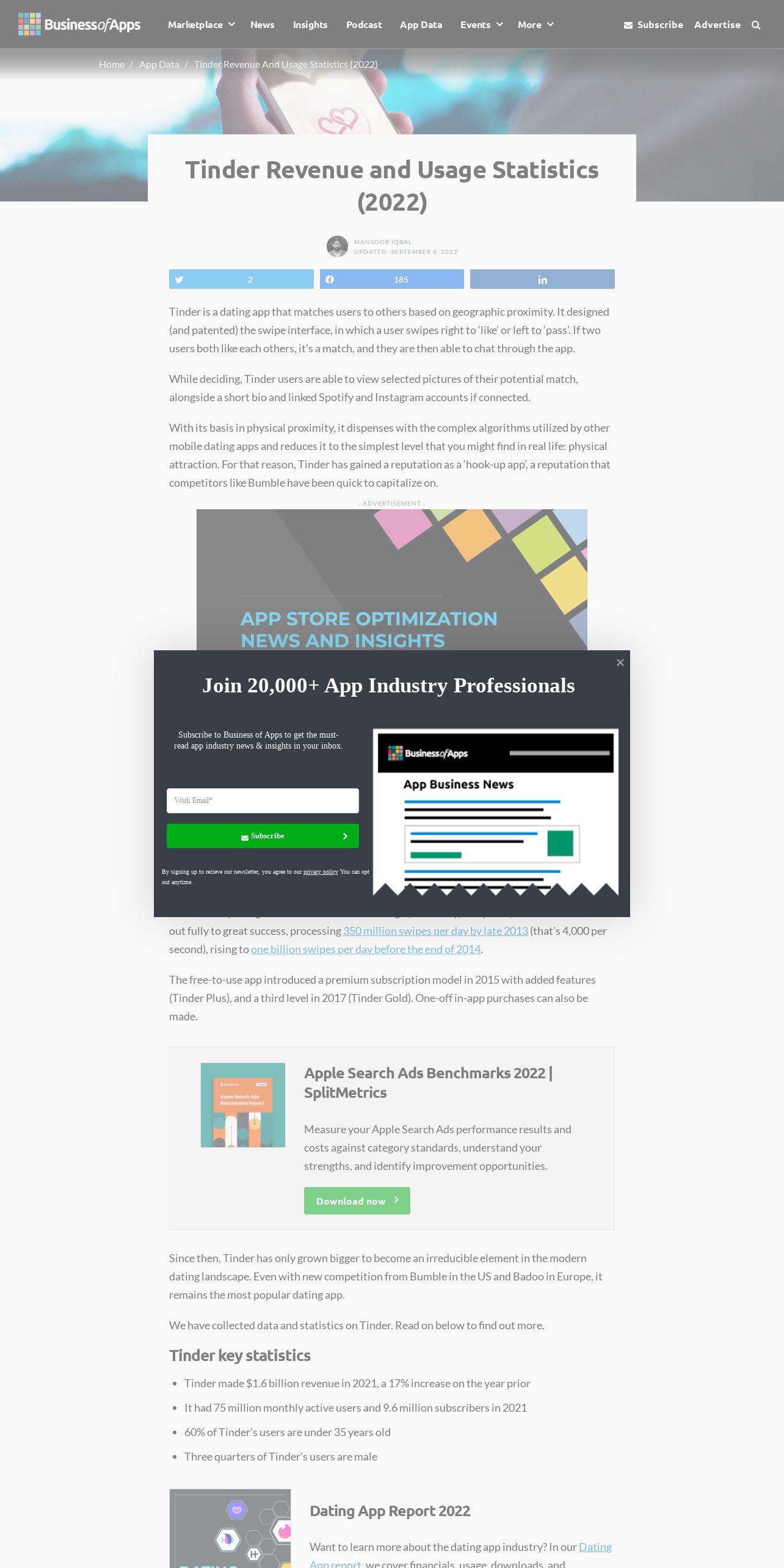 https://www.businessofapps.com:443/data/tinder-statistics/