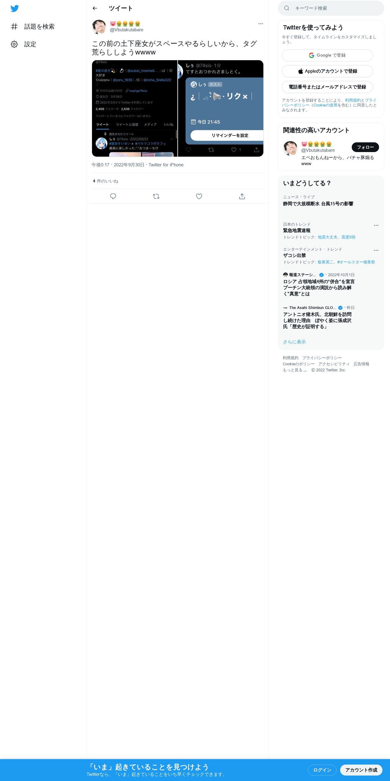 取得元URL: https://twitter.com:443/Vbutakutabare/status/1575822116741468160