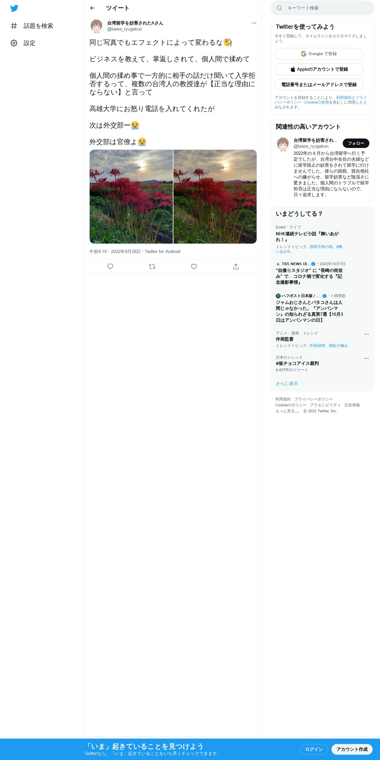https://twitter.com:443/taiwa_ryugakun/status/1574977024933826560