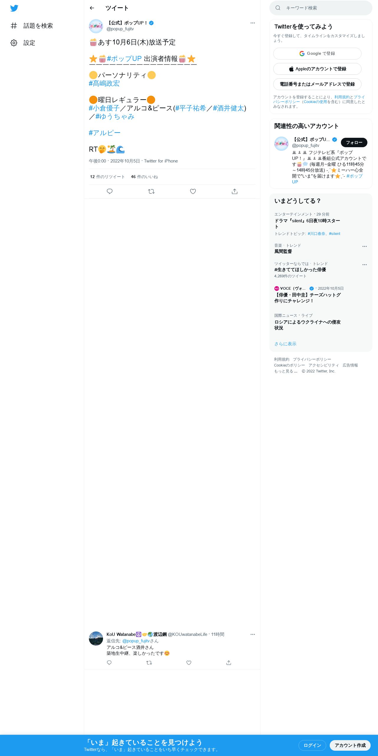 https://twitter.com:443/popup_fujitv/status/1577629773719044098